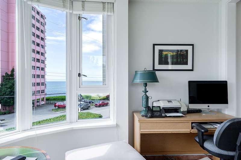 Bright semi-waterfront 2-bed, 2-bath home with stunning ocean & mountain views from 3 sides. Enjoy two private balconies, rich walnut floors, and a house-sized kitchen with space for full-size furniture—perfect for stylish downsizing. Includes 2 parking spots (1 EV-ready), guest parking, exercise room, and peaceful surroundings. Walk to Dundarave, Ambleside, the Seawall, Rec Centre, Library, shops, restaurants & more. Nature and convenience at your doorstep. Book your private showing today!