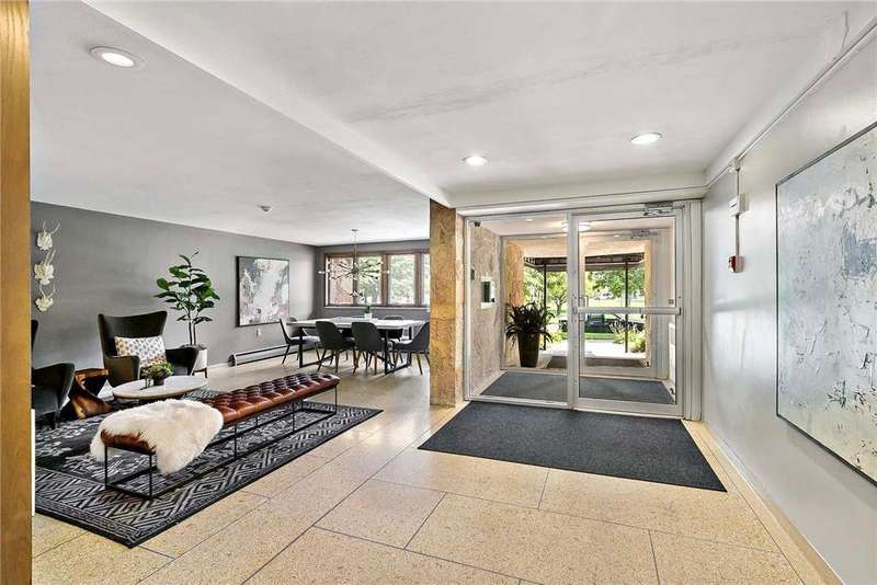 You’re in luck—Welcome to 2928 Dean Parkway, perfectly nestled between Cedar Lake, Lake of the Isles, and Bde Maka Ska. This stylish 1960 Mid-Century Modern building features a freshly updated lobby and refreshed hallways, complete with show-stopping walnut entry doors. Park in your generously sized heated garage stall- #23 (goodbye, winter scraping), that is just around the corner from the elevator! Inside Unit 3J, you’ll find a smart “double unit” layout with a bedroom and bathroom on each side—ideal for guests, roommates, or just spreading out. The bright living room flows into a cozy dining nook with a private balcony. You’ll also enjoy an updated kitchen with stainless steel appliances, and a rare in-unit laundry room. Hardwood floors, generous storage, and views of the brand-new community courtyard round out the space. Try your hand at raised-bed gardening, fire up the grill, or explore the nearby restaurants, bars- just steps from your door. Mid-century charm, modern convenience, and lakes for days—what more could you ask for?