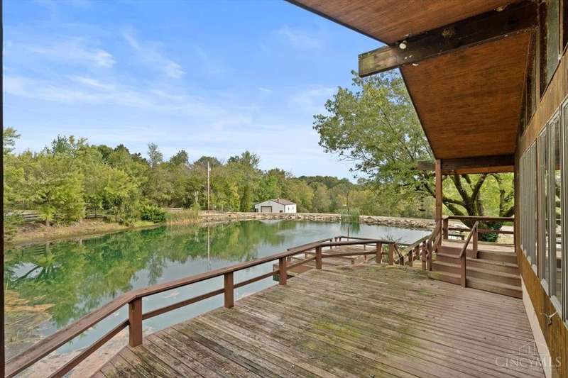 8 Acre Mini-Farm with 3 Bed Brick Ranch in Little Miami Schools! Stunning Setting as Home Sits Overlooking 1/2 Acre Stocked Pond & Features Huge Great Room with Wood Stove, Vaulted Ceilings & Bay Windows. Large Living Room Offers Opportunity for Conversion to Full Master Suite. Partially Finished Lower Level with Additional Bath that Needs Re-Worked, Brand New Carrier Split Zone HVAC Systems. Massive Tiered Wrap Around Deck Stretches Down to Pond & Dock for Fishing/Swimming or Peaceful Enjoyment. Property Includes 30x40 Heated/Insulated Shop with Water & Gravel Pad for Parking or Room for Another Barn, 20x30 Livestock Barn & Chicken Coop. 2.5 Acres of Fenced Pasture that Sits Next to Subtle Year-Round Creek that Flows Through Property & Ample Space for More Pasture Ground. So Much Opportunity is Packed into this 8 Acre Treasure Ready for You to Make it Your Own! Sold As-Is, Immediate Occupancy!