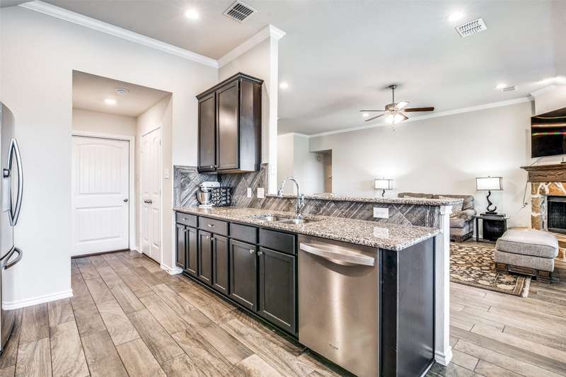 ***UPDATED PICTURES ADDED*** Welcome to this beautifully maintained one-story home built by Robbie Hale Homes, located in the desirable new phase of the Rolling Meadows Addition in Royse City. Freshly painted throughout and featuring brand-new luxury vinyl plank flooring in all bedrooms, this home offers a clean, modern look with low-maintenance living. The open-concept living area includes a cozy corner fireplace, ceiling fan, and seamless flow into the spacious kitchen with stainless steel appliances perfect for entertaining and everyday living. The large primary suite boasts a generous walk-in closet and en-suite bathroom complete with granite composite countertops, double vanities, jetted tub, separate shower, and elegant ceramic tile finishes throughout.Dont miss this move-in-ready gem offering comfort, style, and convenience in a growing community.