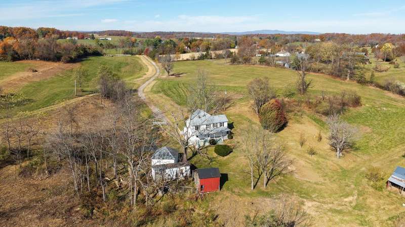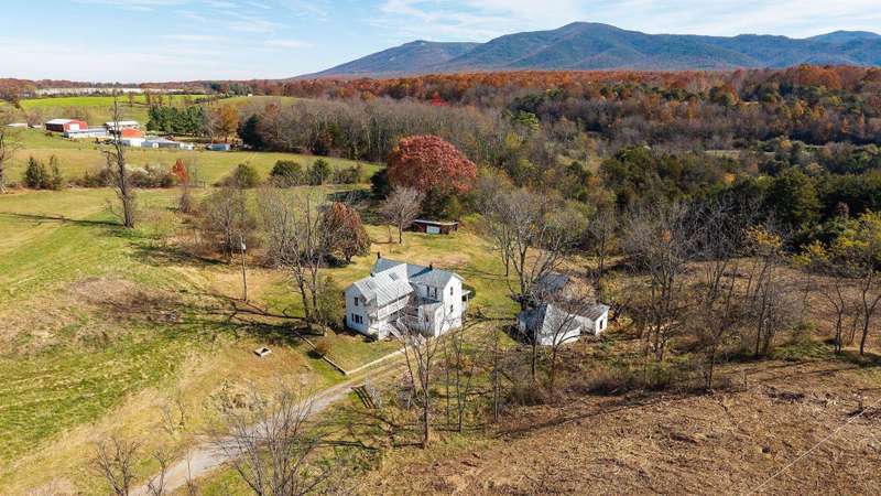 SAVE THIS HOUSE! Tucked in a private valley with farmland all around and Blue Ridge views out front, this 1910 farmhouse is ready for resurrection. Think: metal roof, big front porch, side sleeping porch, hardwood floors, spring-fed water, and barns/outbuildings that speak to its working-farm history. Quirky and cool-its original orientation faced the old rail line (you can still hear trains drift by). ~2 acres (+/-) in the Riverheads School District. Yes, it's a major rehab, but the payoff-equity, character, and pride-is worth it. Contractors, preservationists, and homesteaders: bring vision, tools, and a plan. RESURRECTION, indeed. Some AI rendering photos included so one can envision a finished product..