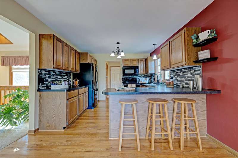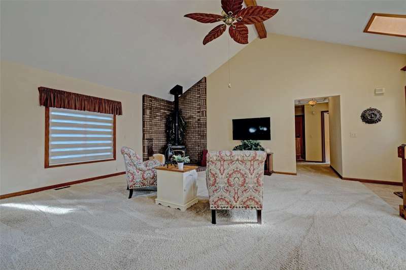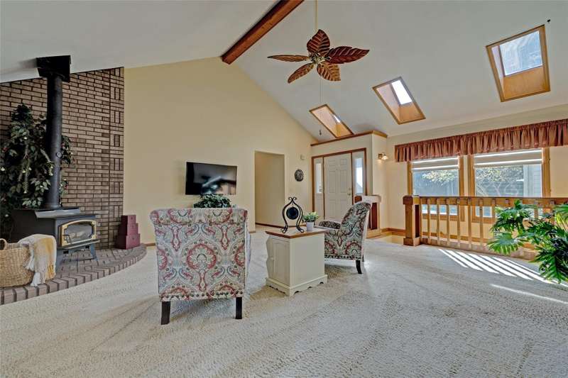 Welcome to this stunning property that combines elegance, comfort, and functionality, all set on nearly 2.5 acres of rolling, picturesque land. From the moment you arrive, the circle driveway with a graceful water fountain sets the tone for the impressive features that await inside. Step into the great room, where soaring ceilings, abundant natural light, and expansive windows frame serene views of the surrounding landscape. The open floor plan flows effortlessly, highlighted by gleaming hardwood floors and Andersen windows that enhance both beauty and energy efficiency. This spacious home offers 4 bedrooms and 3.5 bathrooms, thoughtfully designed for modern living. The main kitchen is well-appointed with all appliances included, while a second full kitchen in the finished walkout basement provides added versatility for entertaining, extended family, or guests. The basement level feels like its own private retreat, boasting a large bedroom, full bath, living space, bar area, and second laundry room. Convenience is a hallmark of this property, with dual laundry areas—one on the first floor and another downstairs—as well as a handicap-accessible bathtub, ramp access from the oversized side-entry garage, and a whole-house generator for peace of mind. Every detail has been considered to ensure both comfort and accessibility. Outdoors, nearly 2.5 acres of rolling terrain invite you to relax and enjoy the views. Whether you’re hosting gatherings, savoring quiet mornings, or simply appreciating the space around you, this home offers the perfect backdrop. Combining thoughtful design with luxurious touches and practical amenities, this property truly has it all.