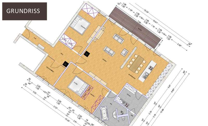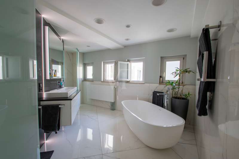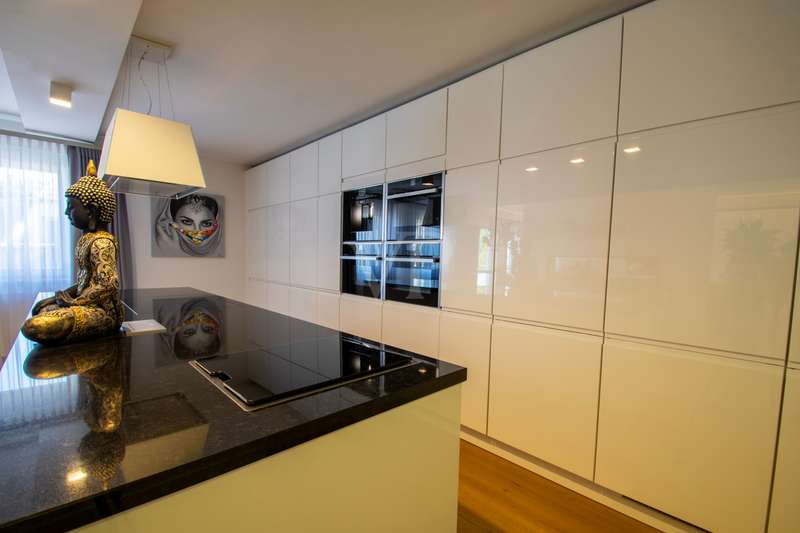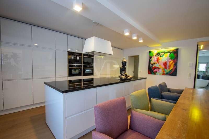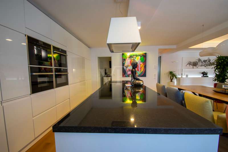 Welcome to this exquisite condominium, which offers maximum living comfort on almost 185 m² of living space. This stylishly furnished apartment combines timeless elegance with modern design and meets the highest standards of quality and aesthetics. The spacious, open-plan living and dining area is the heart of this exclusive property. Here, living comfort and design are combined at the highest level. The large windows flood the room with natural light and offer a fantastic view of the greenery, while high-quality materials and stylish details create an inviting atmosphere. The open kitchen is perfectly integrated into the living/dining area and, with its modern equipment, offers everything a gourmet chef's heart desires. There is also a separate kitchen, which is ideal for elaborate cooking projects or meal preparation. Both kitchens are equipped with high-quality appliances and offer plenty of storage space. The bathroom is a true wellness paradise. Equipped with a free-standing bathtub, it offers you the perfect place to relax after a long day. High-quality fittings and tasteful tiles underline the luxurious ambience. Another highlight of this apartment is the beautiful balcony, which invites you to linger. Here you can enjoy the peace and quiet while you gaze into the distance or end the day with a glass of wine. This exceptional condominium combines maximum living comfort with incomparable style. It offers you not just a home, but a living space in which you will feel completely at ease. Be inspired by the elegance and luxury of this property! Furnishings: For an immediate feel-good ambience, the property is offered with furnishings for an additional €128,000. This includes tasteful furniture, high-quality art and accessories that are perfectly coordinated with the architecture of the apartment. Parking space: An underground parking space is offered for an additional €25,000 to facilitate stress-free access to your new apartment.