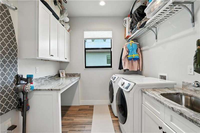 This like-new Cayman model is located in a quiet, family-friendly neighborhood in desirable Southwest Cape Coral-just minutes from Cape Harbour and downtown Cape Coral, offering easy access to shopping, dining, and all the great restaurants the area has to offer! Featuring over 2,200 sq ft, this home includes 3 bedrooms plus a den, 2 full bathrooms, and a 3-car garage with epoxy flooring. Interior upgrades include 6x36 wood-look plank tile throughout, wood flooring in the den, crown molding with rope lighting in tray ceilings, level 5 granite countertops, level 5 drywall finish, and stainless steel appliances. The metal roof includes a decorative cupola, and the home is equipped with underground electric and a 15kW generator hookup. The resort-style saltwater pool is the centerpiece of the extended lanai, complete with a picture screen enclosure and a full outdoor kitchen with vented hood-ideal for relaxing or entertaining. This move-in-ready home is packed with thoughtful upgrades and perfectly set up for stress-free Florida living. Schedule your showing today!