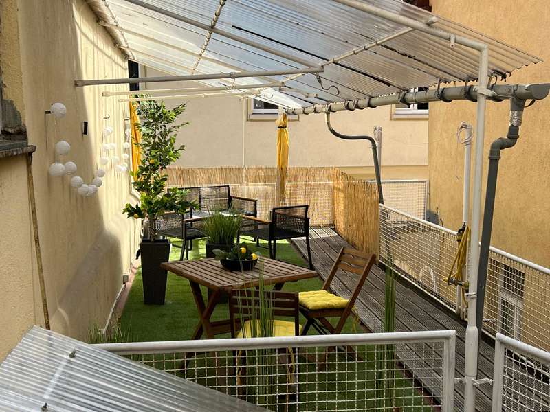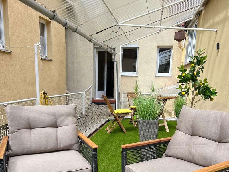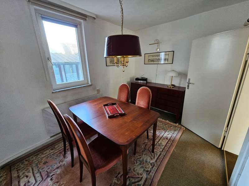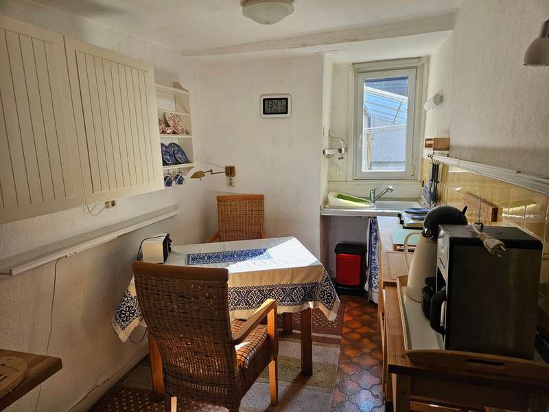 Dear interested parties. We are pleased to present this charming terraced house with vaulted cellar, roof terrace and garage in a quiet residential area in the historic old town of Ochsenfurt. This slightly set-back terraced house from the 19th century with a living space of approx. 120 m² and a plot area of approx. 140 m² is located directly in the historic old town of Ochsenfurt. This property offers 4.5 rooms, including two bedrooms, two bathrooms and two kitchens and can also be used as a vacation home. The swimming pool, the marina, the Main floodplains with passenger boats, restaurants and cafés and numerous shopping facilities are all within walking distance. You can reach the house directly via the small courtyard. In the large entrance area, the beautiful winding wooden staircase that connects both floors immediately catches the eye. On the first floor itself there is a storage room and pantry-kitchen with access to the vaulted cellar, a guest WC, a large room and a bathroom, where the washing machine connection is also located. The upper floor is divided into a bedroom with real wood flooring, a kitchen, a small office with a storage room, a daylight bathroom and the living room, from which the dining room leads off. The living room also provides access to the large roof terrace. A particularly beautiful detail of the house is the vaulted cellar, which is ideal for use as a wine cellar and also offers practical storage space. The attic also offers additional design options and could be used as further living space or storage space after renovation. Further plus points of this property, in addition to its central location, are the garage (a real advantage in this area, as few houses have their own garage) and, as already mentioned, the roof terrace measuring over 20 m². The electrical wiring was partially renewed in 2022. Energy-efficient ceramic heating systems were also installed in many rooms. There is also the option of connecting the house to district heating. The purchase price of this property is €220,000, including the garage. The buyer's commission is 3.57% (incl. VAT) of the notarized purchase price. WE KINDLY ASK YOU TO NOTE: VIEWINGS ARE ONLY POSSIBLE AFTER ONLY POSSIBLE AFTER RECEIPT OF A SUITABLE PROOF OF CREDITWORTHINESS.