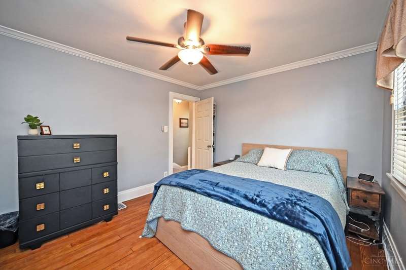 CHARMER with few equals offering value added improvements and loving care. Beautiful HDWD flrs at foot, neutral decor, double hung windows. Cooks kitchen w/ SS appliances, Gas oven range, beautiful 42 cabinetry, solid surface counters & Huge W/I pantry. Upstairs 3 Bdrms & updated bath. The lower level provides additional living space, & Lots of storage. Enjoy the seasons outside too, wooded fenced yard w/ fire pit, expanded parking space, garage and lovely flower beds. The oversized rear deck is freshly painted ready to celebrate your new home party, while the inviting full front porch Welcomes a quiet relaxing space to share a coffee. Small quiet cul de sac street with little traffic yet SO close to Restaurants, shopping and more.