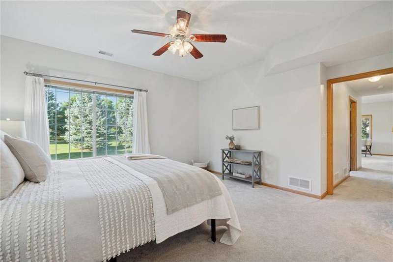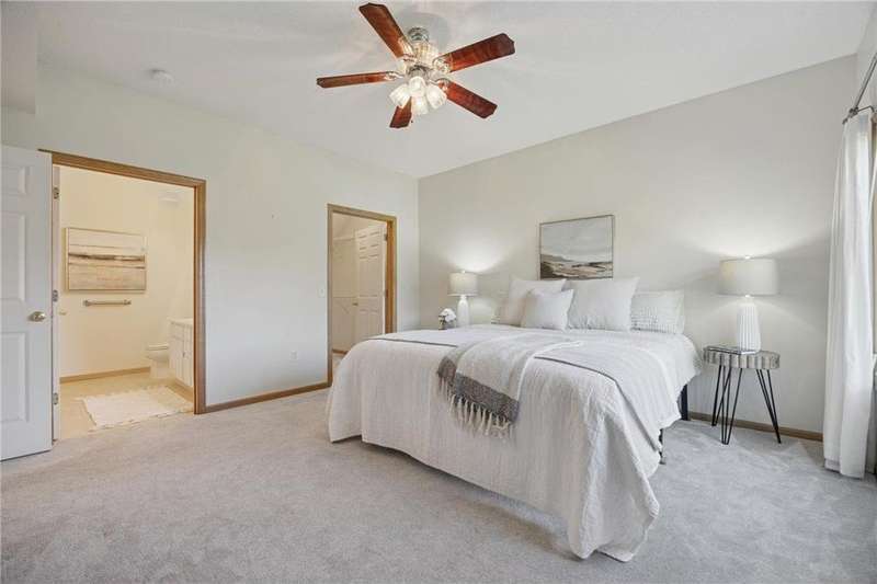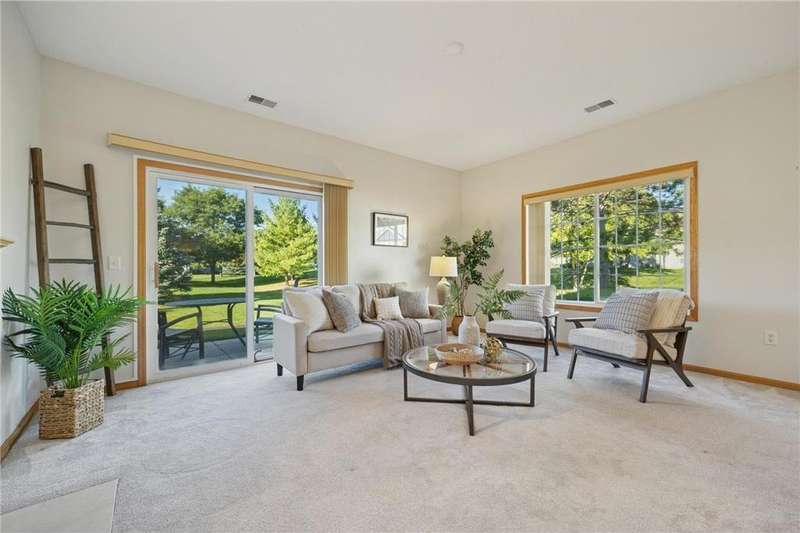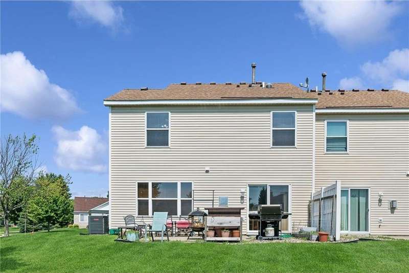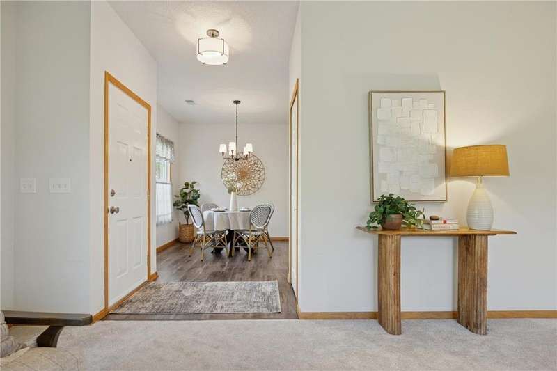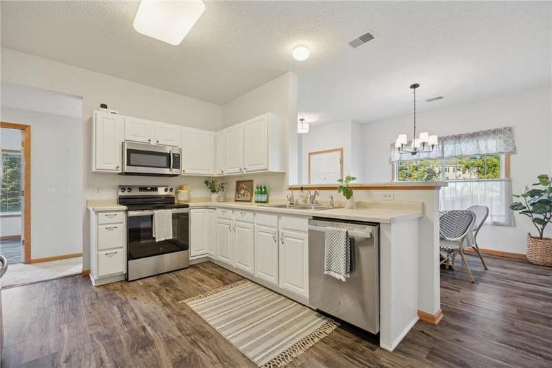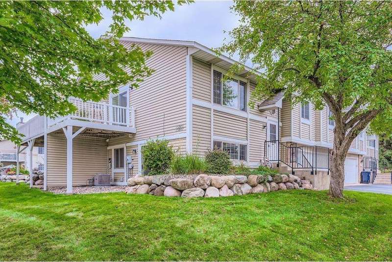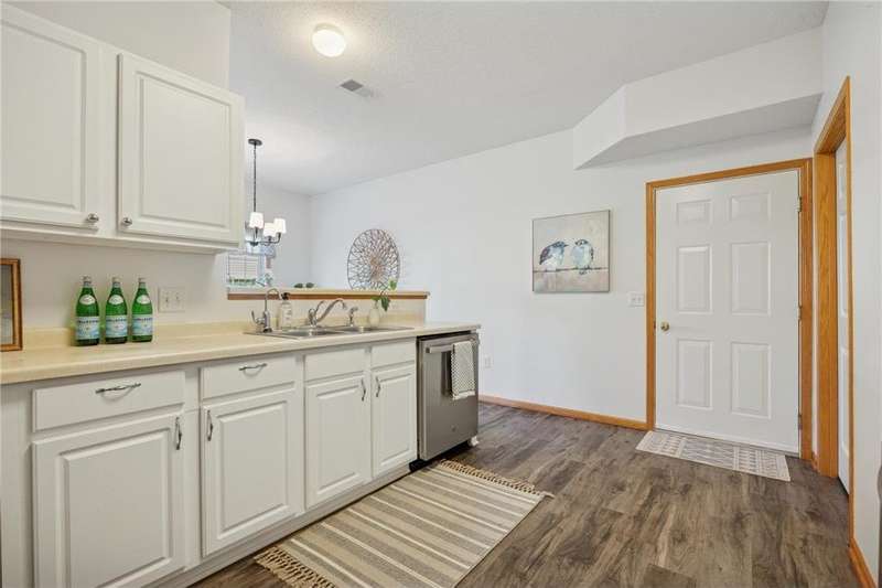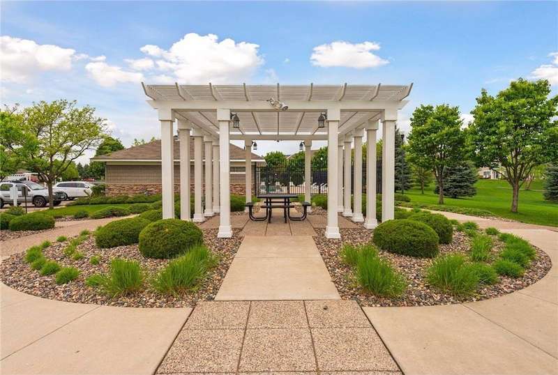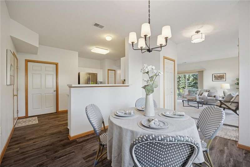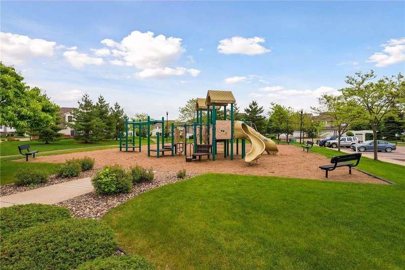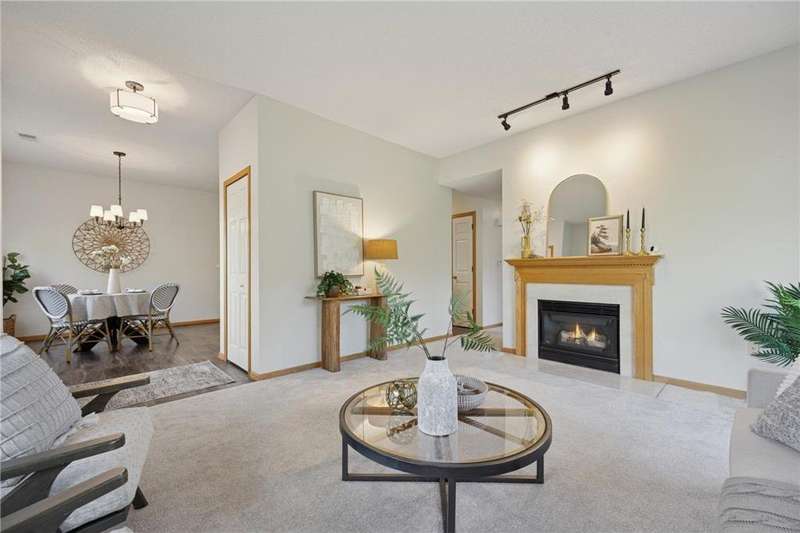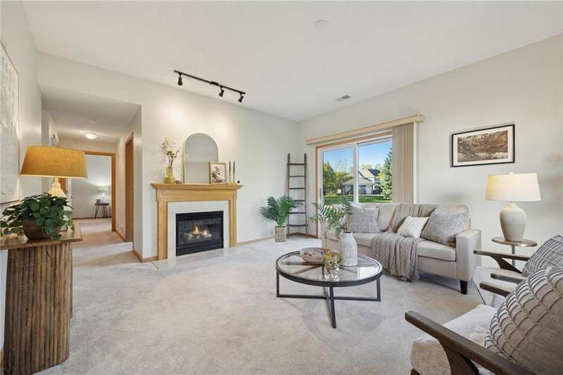 SINGLE-LEVEL LIVING! Excellent opportunity for single-level living in a great Apple Valley neighborhood. Who new the suburbs could be so walkable? Bakery, cafés, and several restaurants are all within a short walk. Home is nicely updated with new flooring, modern lighting, updated appliances, and an extra touch of charm! Large primary suite features walk-in closet and en-suite bath. Enjoy the extra sunlight that an end unit offers. Cozy up with the gas fireplace in the colder months. Home is perfectly close to the shared playground and swimming pool, but not too close! Building just had a new roof installed in 2025. 2-car garage plus driveway for parking.
