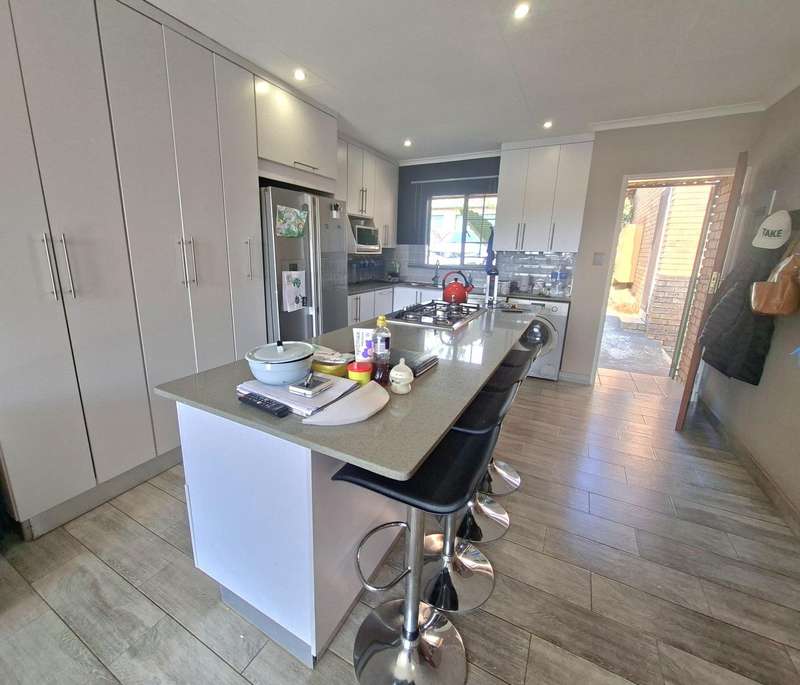 Newly Renovated 2 Bedroom, 2 Bathroom and Double Garage with large Garden Townhouse up for grabs. EXCLUSIVE MANDATE. Welcome to this beautifully renovated, ultra-modern simplex offering comfort, space, and luxury in every detail. This home features: ?Çó 2 Spacious Bedrooms: The main bedroom is large, sunny, and filled with natural light, complete with ample built-in cupboards and a stunning ultra-modern en-suite bathroom. The second bedroom is generously sized with plenty of storage. The main bedroom can be converted to a third bedroom. ?Çó 2 Stylish Bathrooms: Both bathrooms have been tastefully renovated with high-end finishes. The en-suite is state-of-the-art, while the second bathroom includes a bath and a shower over the bath for added convenience. ?Çó Open-Plan Living: The home boasts a flowing open-plan design with a state-of-the-art kitchen fitted with quality finishes, ample cupboard space, and a gas hob overlooking the living area, ideal for entertaining or everyday family living. ?Çó Double Garage: Secure parking with two garages offering extra space for storage or a workshop. ?Çó Large Private Garden: The Patio overlooks a large garden where you can live out your creativity. Outdoor space is perfect for relaxing, entertaining, or for children and dogs to play. This simplex unit combines modern elegance with practical living, offering a rare opportunity for a move-in-ready home with every comfort you could need.