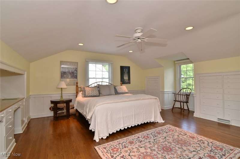 Beautifully updated and meticulously cared for home designed by renowned architect - Munroe Copper. Great location on a quiet block near library, athletic fields, Shaker Median Trail and just a short walk to the Van Aken District. This inviting turn-key home features rich original architectural details: four fireplaces, gorgeous wide plank oak floors, custom trim, wainscoting and built-ins throughout. The library is adorned with gleaming burled wood panels, bookshelves and carved mantle. The large sunken living room is anchored by the stone fireplace and leads through French doors to the sunny family room with slate floors. Adjoining dining room offers a brick hearth. Stylish, updated kitchen with custom cabinetry, stainless appliances and granite counters. Convenient 1st floor mudroom/laundry has room for an eating area as well. Generous primary bedroom has two walk in closets and a private renovated full bath. The second bedroom offers a wide built-in desk and wall of drawers. Two more bedrooms each with two closets and a updated hall bath. Nicely finished basement with Nature Stone throughout has a spacious family room, wet bar, half bath and several storage closets and work rooms. The attached 2 1/2 car attached heated garage has wall storage system, and dog door to the fully fenced backyard. Lovely brick patio off the family room. This home blends the best of charming original character, quality updates and the plentiful storage you are seeking.