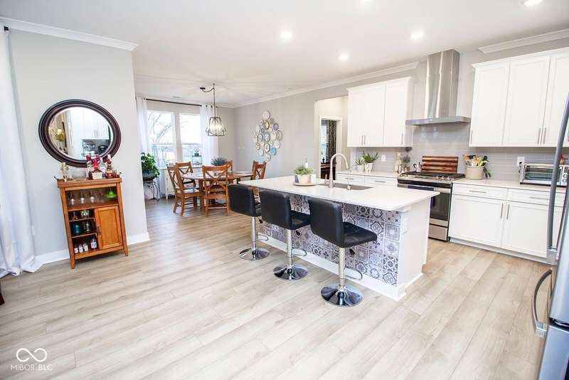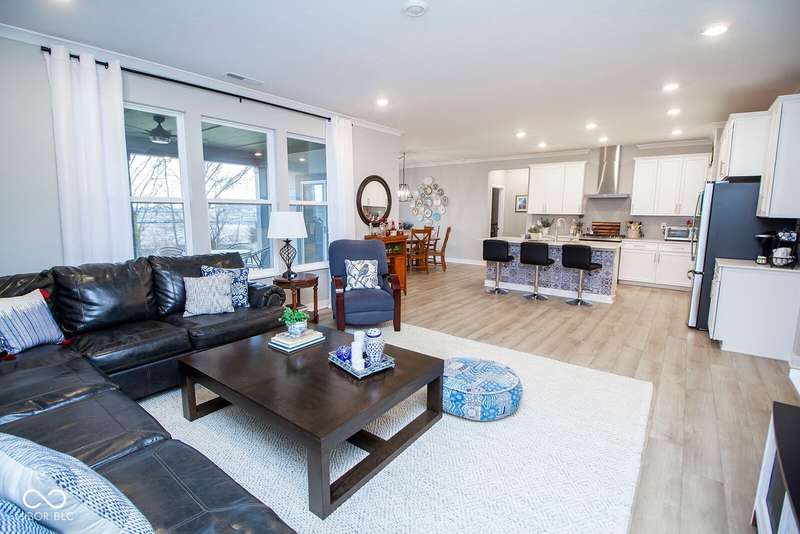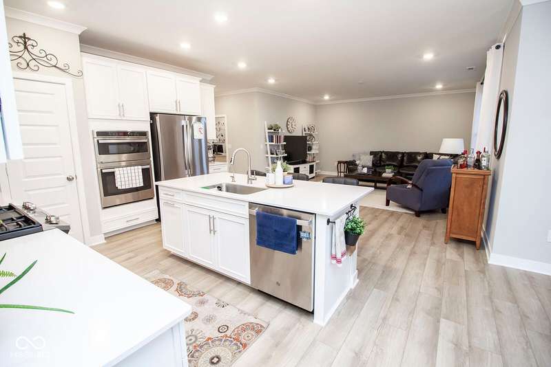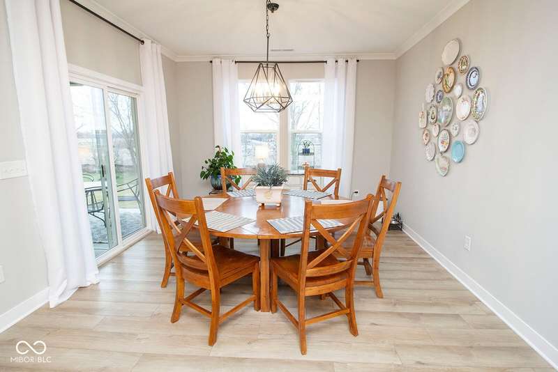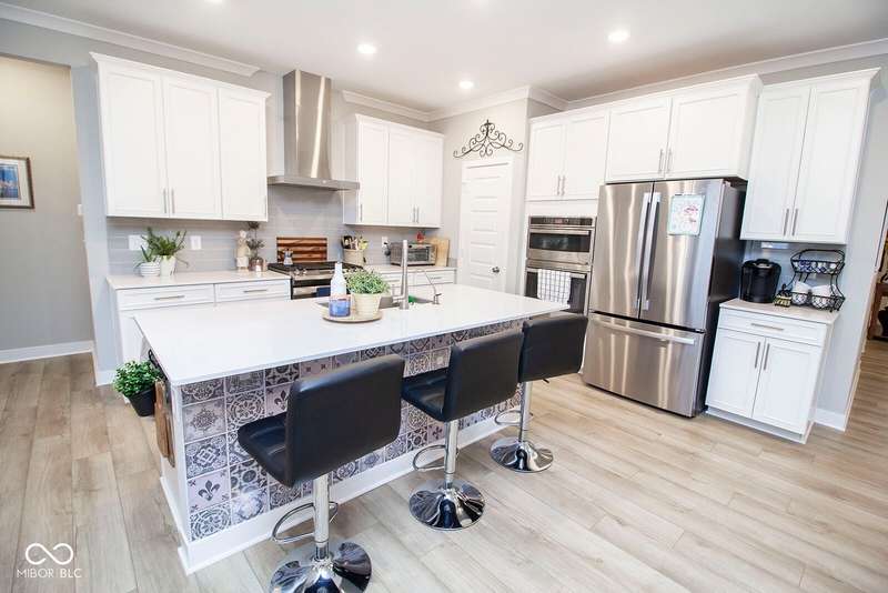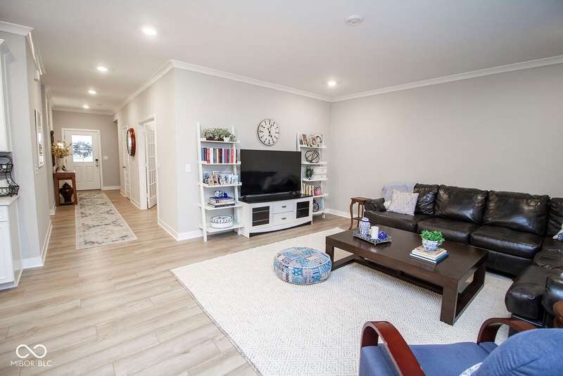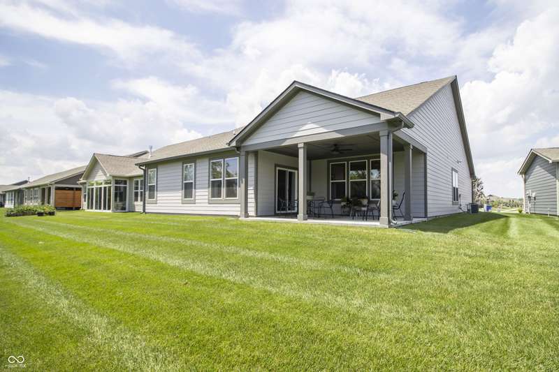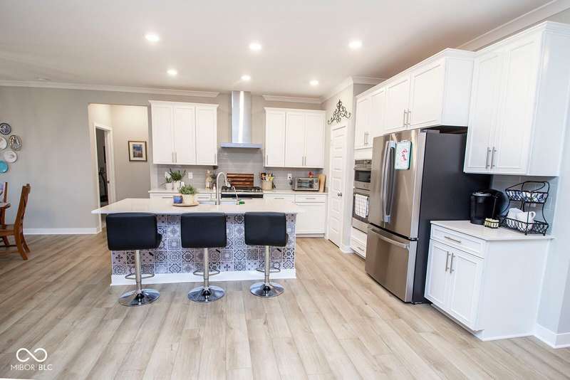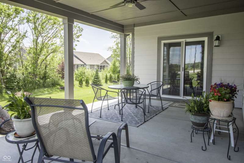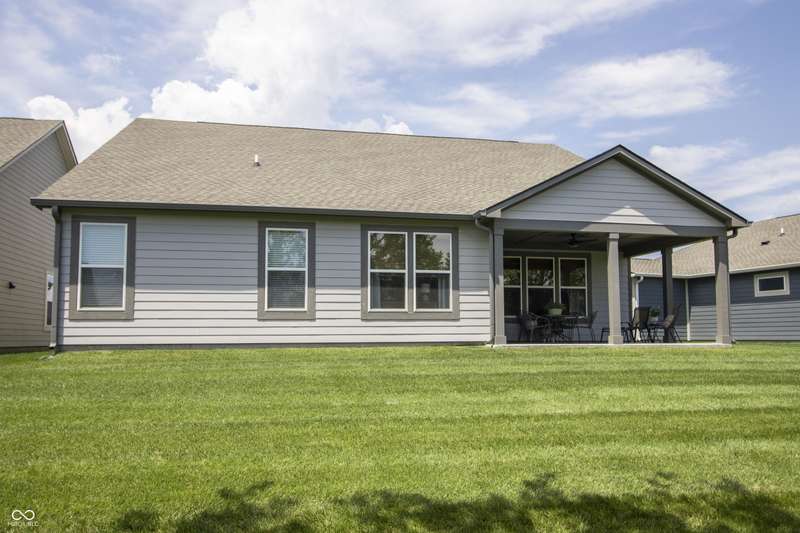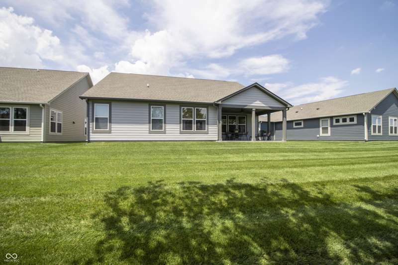 Nestled in McCordsville, IN, at 5081 Holborn AVE, this single-family residence presents an attractive property in great condition, offering a blend of modern living and comfortable design. The heart of this home resides in its open floor plan, where the living room and kitchen merge to create an inviting space; the living room is enhanced with crown molding. The kitchen is the perfect place to explore your culinary passions, featuring shaker cabinets, backsplash, a large kitchen island, stovetop, double oven, and a wall chimney range hood; crown molding further enhances the kitchen, and a kitchen bar provides seating for casual meals. The primary bedroom offers a tray ceiling, while the bathroom features a walk-in shower and double vanity. This property also offers a laundry room, an outdoor dining area, a patio, and a walk-in closet, providing practical spaces for everyday living. With 2205 square feet of living area situated on an 8538 square foot lot, this residence, constructed in 2022 with 3 bedrooms and one story, is ready to welcome you. HOA covers the landscaping, mowing, pool access, community center, irrigation, mulch, trimming, fertilizing, snow removal~driveway, walks and streets.