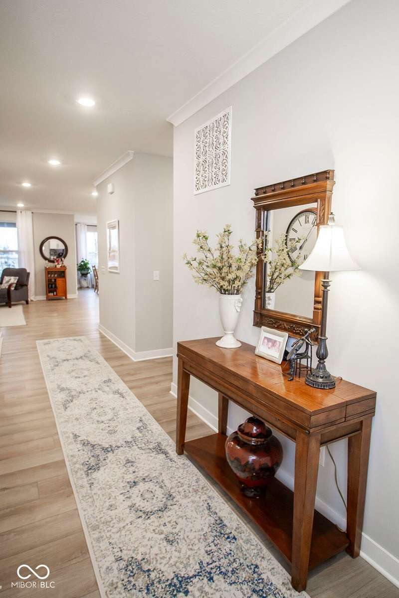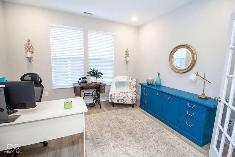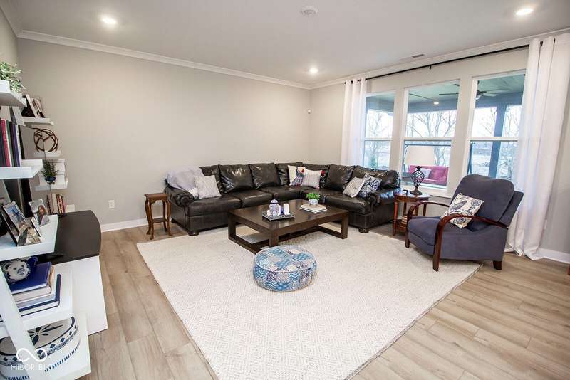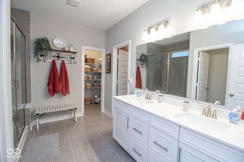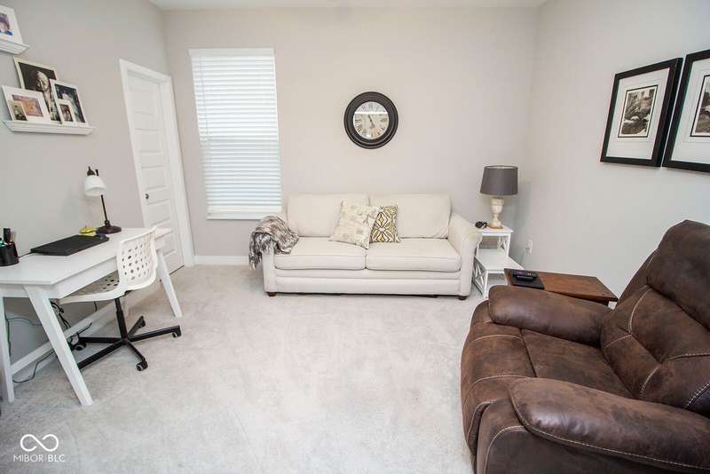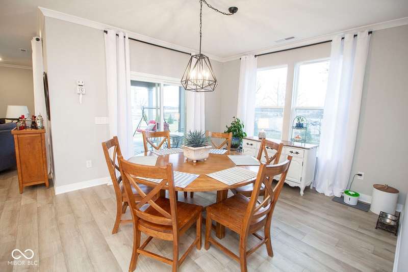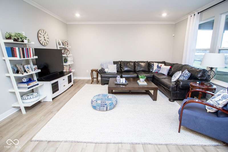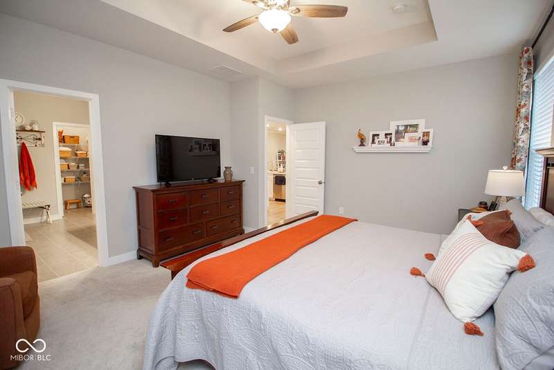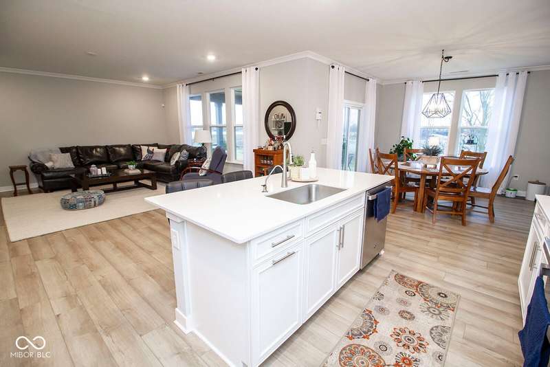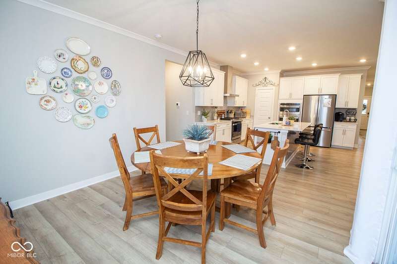 Nestled in McCordsville, IN, at 5081 Holborn AVE, this single-family residence presents an attractive property in great condition, offering a blend of modern living and comfortable design. The heart of this home resides in its open floor plan, where the living room and kitchen merge to create an inviting space; the living room is enhanced with crown molding. The kitchen is the perfect place to explore your culinary passions, featuring shaker cabinets, backsplash, a large kitchen island, stovetop, double oven, and a wall chimney range hood; crown molding further enhances the kitchen, and a kitchen bar provides seating for casual meals. The primary bedroom offers a tray ceiling, while the bathroom features a walk-in shower and double vanity. This property also offers a laundry room, an outdoor dining area, a patio, and a walk-in closet, providing practical spaces for everyday living. With 2205 square feet of living area situated on an 8538 square foot lot, this residence, constructed in 2022 with 3 bedrooms and one story, is ready to welcome you. HOA covers the landscaping, mowing, pool access, community center, irrigation, mulch, trimming, fertilizing, snow removal~driveway, walks and streets.
