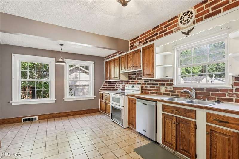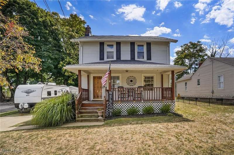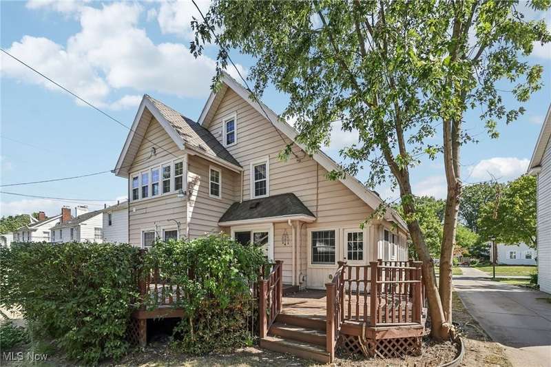 This attractive Dutch Colonial n sought-after West Akron neighborhood blends charm, comfort, and community. Just south of Wallhaven it is nestled in a charming area and convenient to the retail, entertainment, recreation, restaurants W. Market and Montrose offer. Enjoy nearby Schneider Park and JE Good golf course. Very convenient to Downtown and Rt 77 for Akron-Canton-Cleveland commutes. Hardesty Park, Firestone CLC, Stan Hywet, Sand Run Park, CVNP, and rejuvenating Merriman Valley - great coffee, gelato, restaurants, hiking... all very close. The home greets you attractively from the start with W Akron curb appeal. The home offers good flow starting from many entrances... front porch to foyer, driveway to kitchen, or back deck slider & door for more acquainted guests. The back door receives you into a whandy mudroom / drop-zone. From there enjoy the inviting large open dining room & living room with wood floors. The large eat-in kitchen overlooks the deck/yard and offers more gathering space and lots of cabinets & counters and ceramic floor. Off the living room is ideal for den/office or play area as you may need, with the 2nd full bath. It's a nice first floor. Upstairs offers 3 bedrooms off the central hall, a bonus room over the kitchen, for sleeping or maybe a music or art space, and the full bath with tub. Off one bedroom is a fun space dressed up whimsically where adventure awaits! Pull-down stairs go to a massive attic with tall roof free of trusses, great storage or convert to some useful space (cross gable windows in place). The full basement has the laundry and lots of storage or work space. The deck and yard with playset are nicely private. 2 car detached garage and paved drive. Updated furnace, air conditioning, electrical, hardwood floors, vinyl windows, and full bath, It's a fine package of features, come see your next home! 1-year Home Warranty offered too.