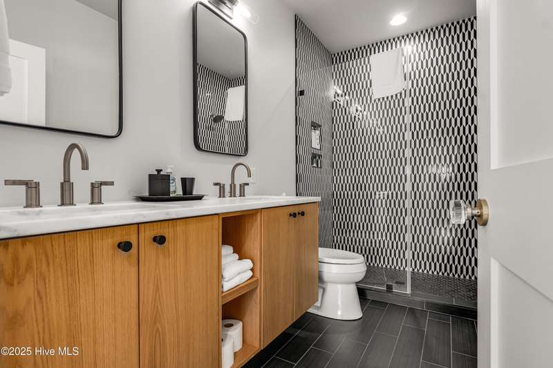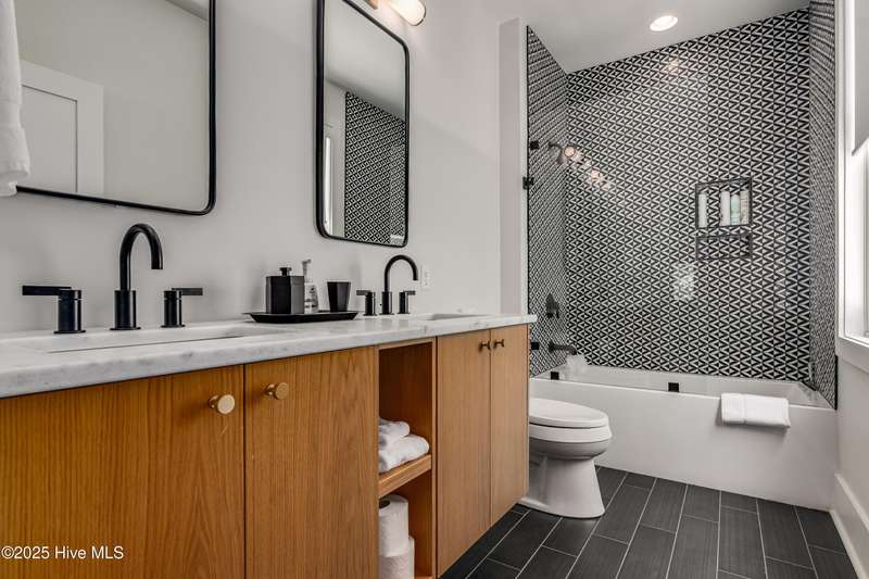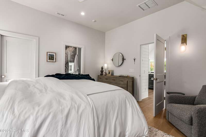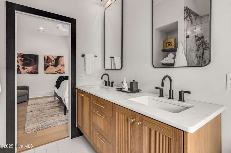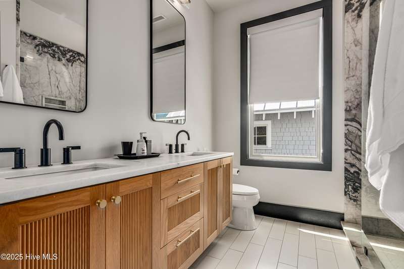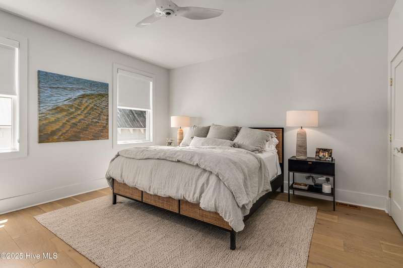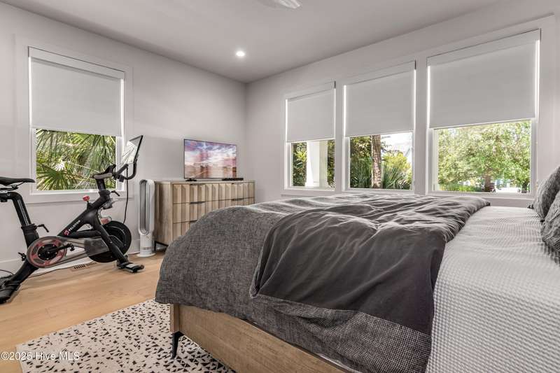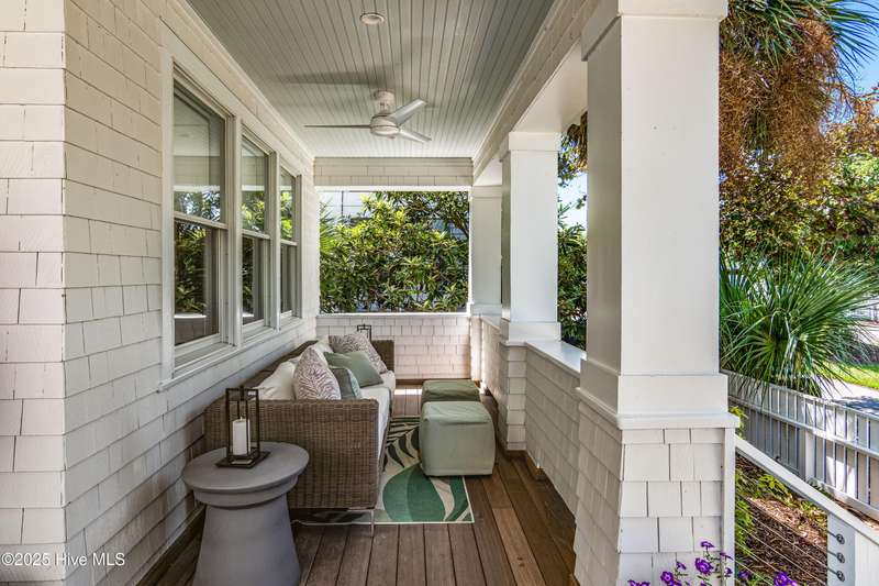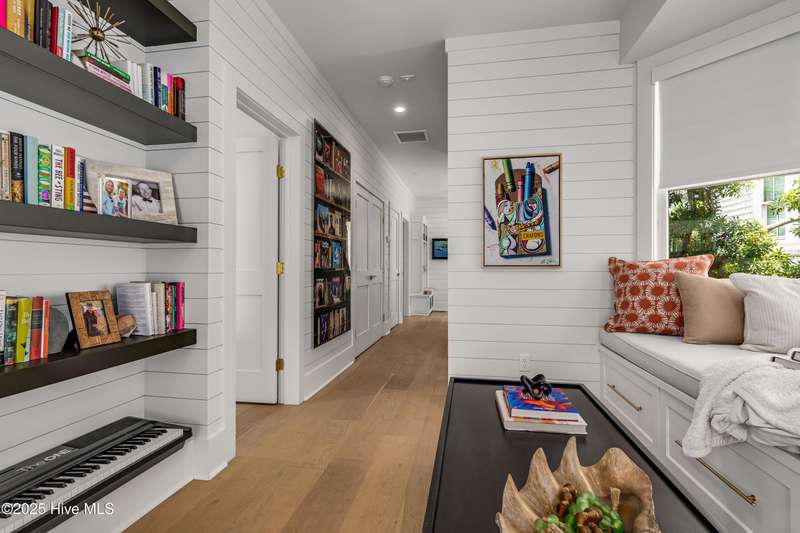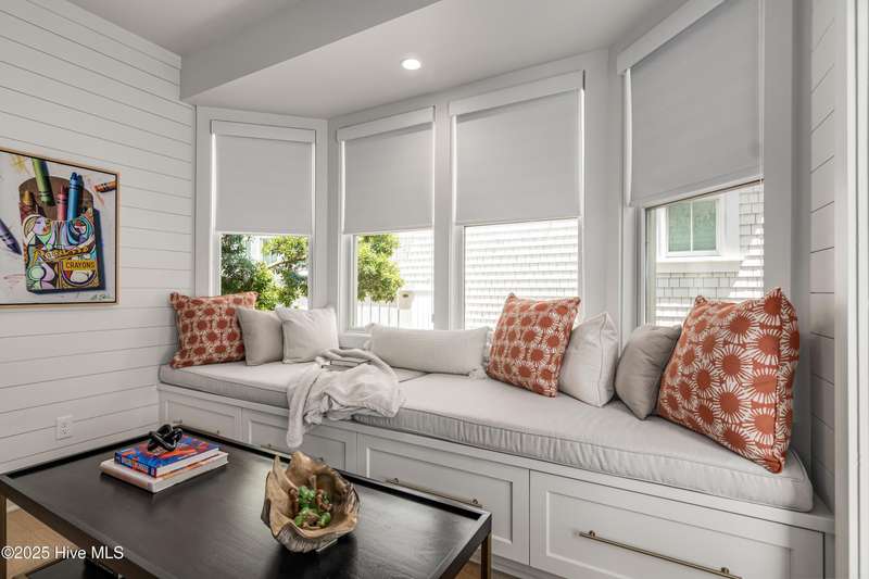 DOWN TO THE STUDS RENOVATION, that was featured in the 2024 HAVEN magazine done by an experienced full time BHI resident. This natural light-filled three bedroom, 3.5 bath retreat in sought-after Harbour Village faces the tranquil Commons Lawn. The floorplan's foyer is outfitted with a hall tree. Drop your stuff and follow the handsome engineered wide-planked hardwoods to the first suite-a large King with a Carolina closet behind a barn door and its own ensuite with a tub/shower. This room, like the rest of the house, offers high ceilings, clean lines and emanates a tasteful, modern designer vibe. Down the hall is this level's sunlit Primary King Suite which features a built-in desk, Carolina closet and a private bath with dual vanity. Outside its door is a bright, bayed gathering space/reading nook with an oversize window seat and access to the back grilling patio. The laundry and a powder room complete this floor. Upstairs reveals a sunny two-story vaulted open floorplan surrounded on three sides by windows. The gigantic, dream kitchen pampers even the pickiest chefs with its high-end Thermador and Jennair stainless appliances, Miele coffee system, additional beverage fridge, HUGE island with breakfast bar, myriads of soft closing storage, yards of quartzite counters, and brushed hardware finishes. The handsome dining area offers views from inside or you can munch al fresco and savor ocean vistas and the sound of waves from the dining table on the house-length porch. The comfy living space provides plenty of seating and is perfect for conversation, game-playing or movie-watching. This level's Primary King Suite includes its own sitting area, an extensive walk-in, and its own bath with a dramatic marble shower. This property boasts an UPGRDED FIRE SURPRESSION SYSTEM, recent painting, decorator details, a back-alley garage ( could construct 4thBR above garage) and conveys with two four-seat golf carts. Memberships available under separate purchase