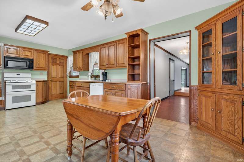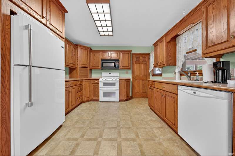 Welcome to this spacious 4-bedroom, 2.5-bath country home nestled on a serene 1-acre lot. Offering approximately 2,400 sq. ft. of living space, this home features a Zinn kitchen with appliances and an eat-in area, a cozy family room with a fireplace, and a living room with a great view of the front yard. Enjoy outdoor living with an enclosed back porch overlooking the secluded setting and mature trees. Ample storage and parking with a 2-car attached garage, a 2-car detached garage, and a pole barn. A rare find—don’t miss this opportunity for country living with some minor changes to make it your own home!