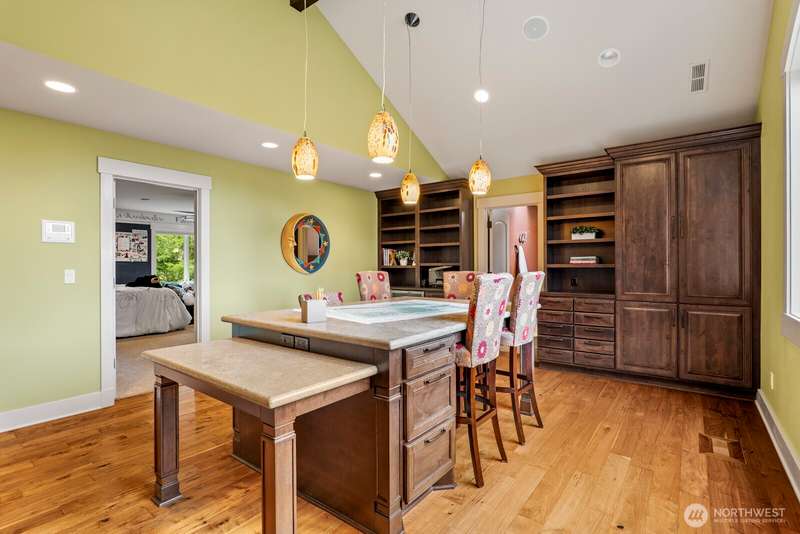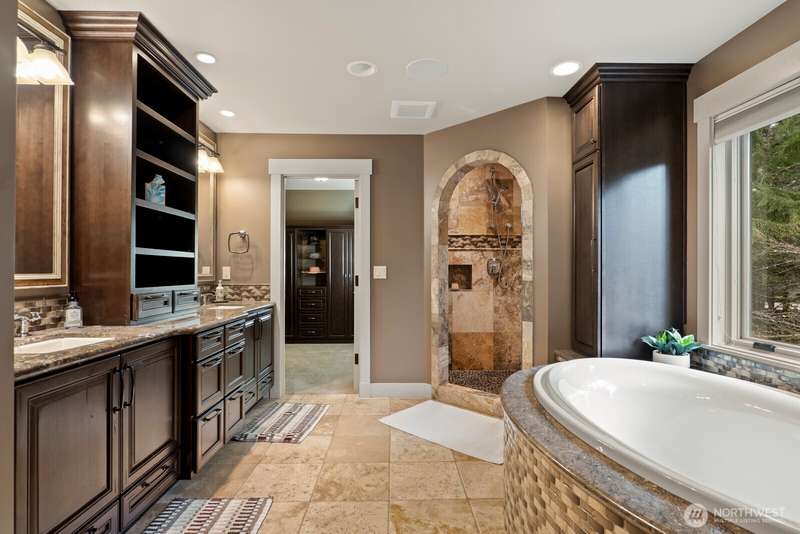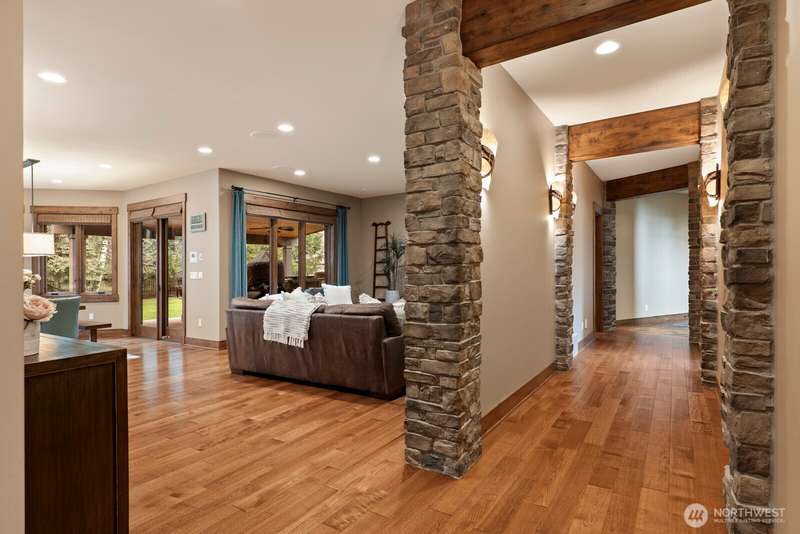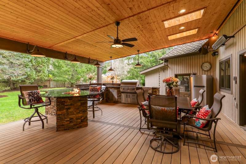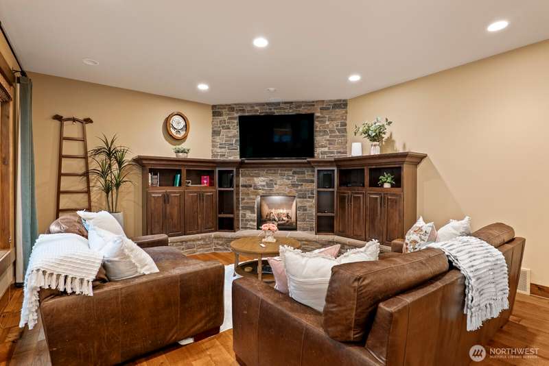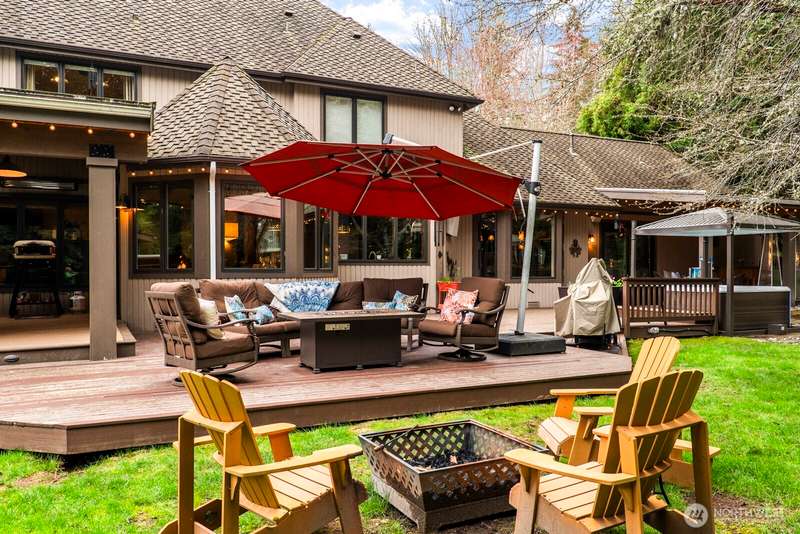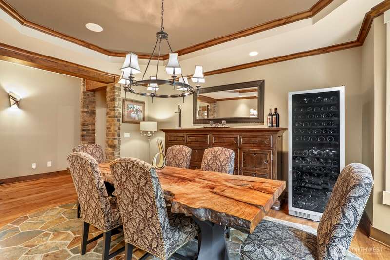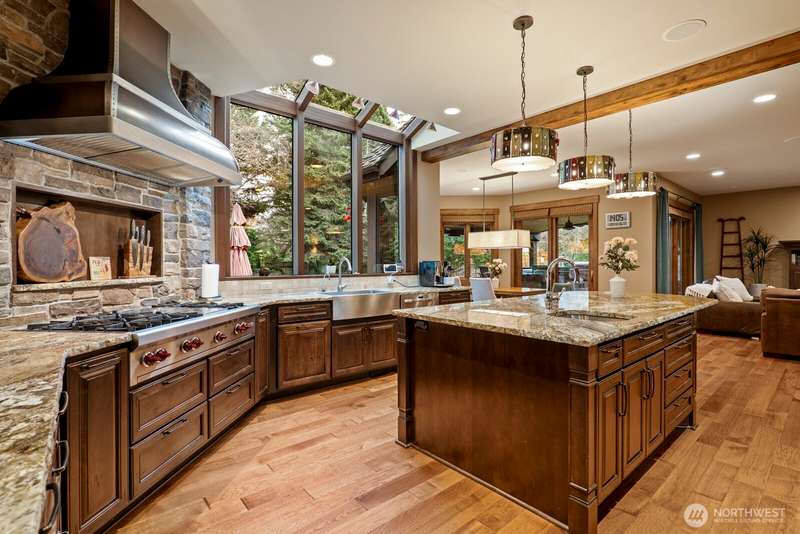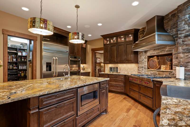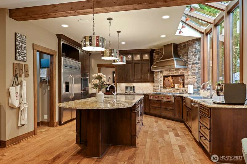 Captivating Lake of the Woods Estate with fabulous floor plan for todays active lifestyle to enjoy entertaining at home. An enchanting 5770* sf of stone, slate, knotty alder & exposed timber beamed ceilings offering a main floor entertaining wing w/a billiard rm, media rm, dining rm w/slate inlaid floor, multiple sets of doors to the awesome covered outdoor kitchen w/granite fire bar, overhead heaters for year round use & relaxation lounge. Proff’l kitchen w/Wolf appliances, live edge slab granite, espresso stained distressed wood cabinetry. Upstairs-4 large en-suite bdrms. Bonus w/slab stone work table. Fenced 1.3 acres w/waterfall, covered hot tub, raised beds, AC, generator, Sonos sound sys, 2 laundry rms & Huge RV garage!