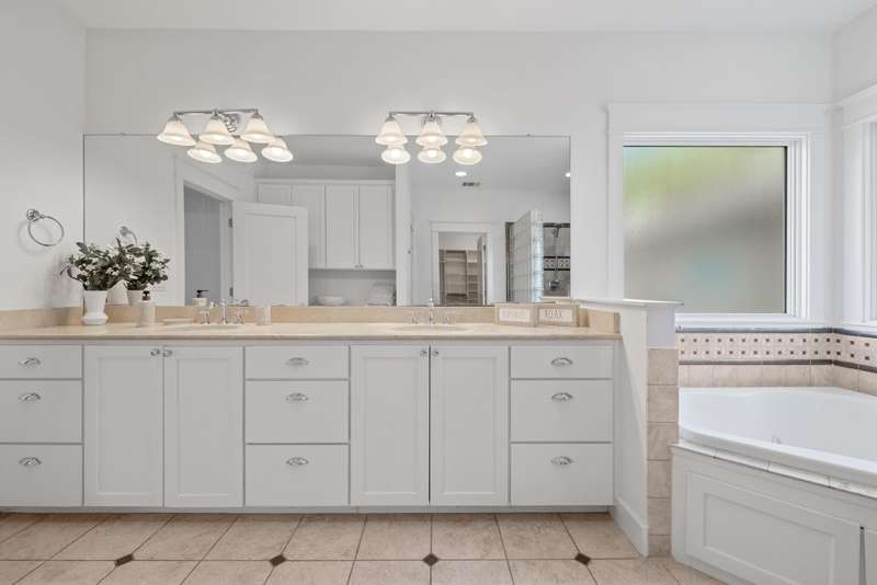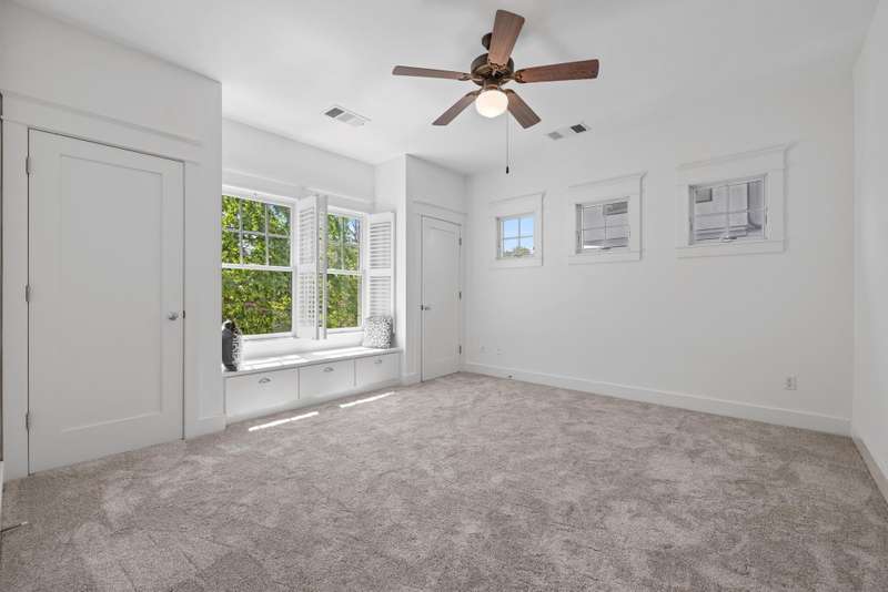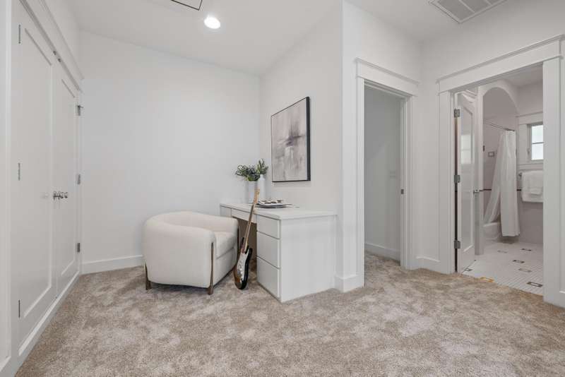 The main level offers a large office which could be a 4th/guest bedroom, dining room, powder bath, and an open kitchen with island seating that flows into the living room with built-ins. Upstairs features a landing with built-in desk, an oversized primary suite, and two additional bedrooms that share a hall bathroom.