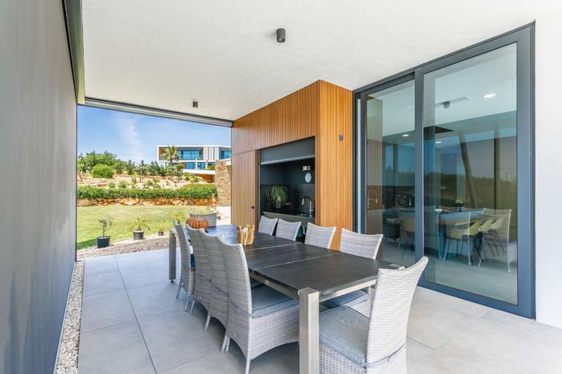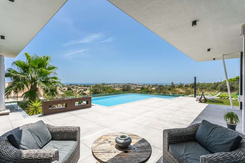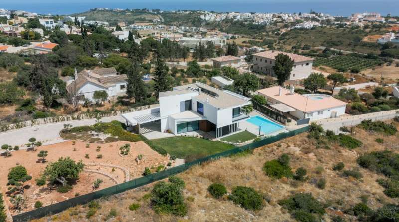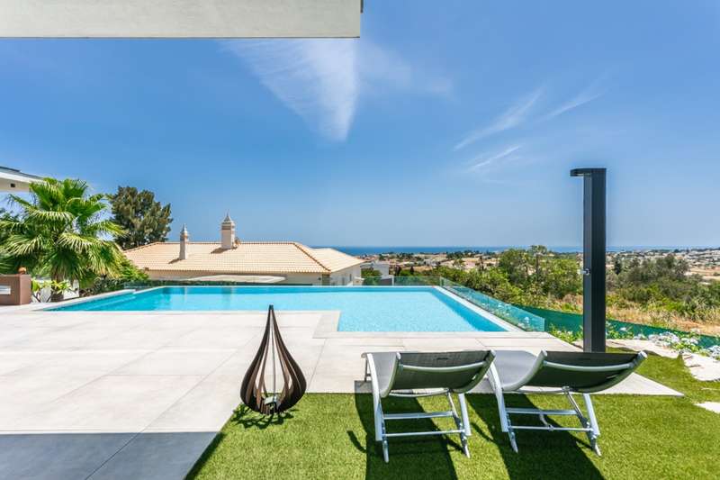 We present this elegant contemporary villa, with stunning sea views, located in the prestigious Cerro da Águia - one of Albufeira's most prized residential areas, in the heart of the Algarve. Recently built and spread over three floors, this property stands out for the functionality of its spaces, the quality of its finishes and a modern decor designed to offer comfort, privacy and sophistication. On the ground floor is the social area, with direct access to the terrace and pool. The large open-plan living room integrates living and dining areas, in perfect harmony with the fully equipped kitchen . There is also a versatile bedroom on this floor. The second floor is dedicated to the private area, with three suites, including the Master Suite with an exclusive balcony and panoramic views of the sea and Albufeira Marina. In the basement, there is a closed garage with capacity for three cars, a generous storage room, a technical area and an additional bedroom with a private bathroom. The outdoor space offers a well-kept garden with areas designed for leisure and socializing, including an outdoor dining area with barbecue, as well as a magnificent swimming pool with full sea views. There is also outdoor parking. This property is a unique opportunity for those looking for a house of excellence, with a modern design, in a privileged location and just a few minutes from the beaches, services and Albufeira Marina. CHARACTERISTICS: Plot Area: 1 193 m2 | 12 842 sq ft Useful area: 600 m2 | 6 462 sq ft Bedrooms: 5 Bathrooms: 6 Energy efficiency: A FEATURES: Contemporary villa 5 bedrooms Sea views Albufeira Marina 3 floors Garden Swimming pool Basement