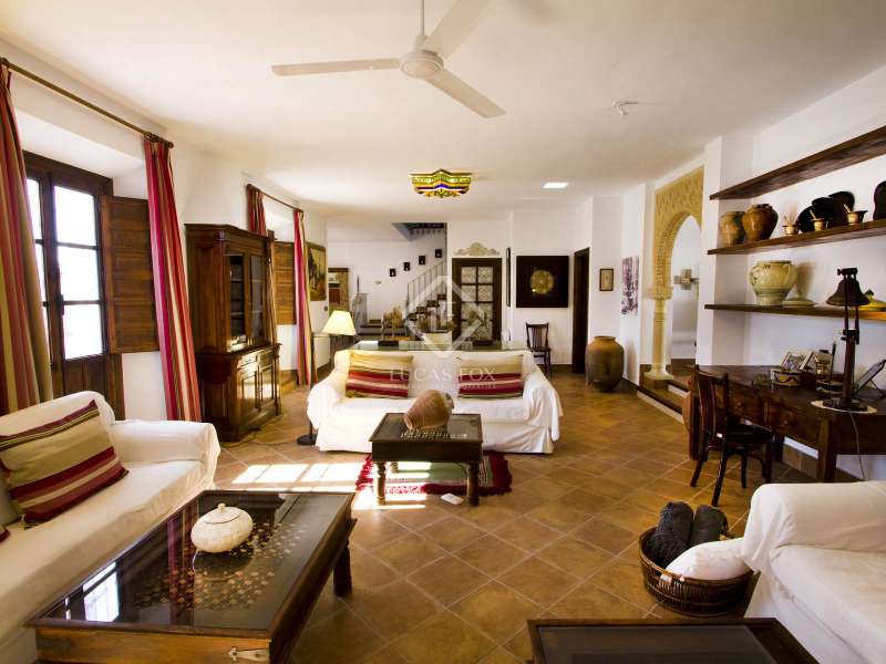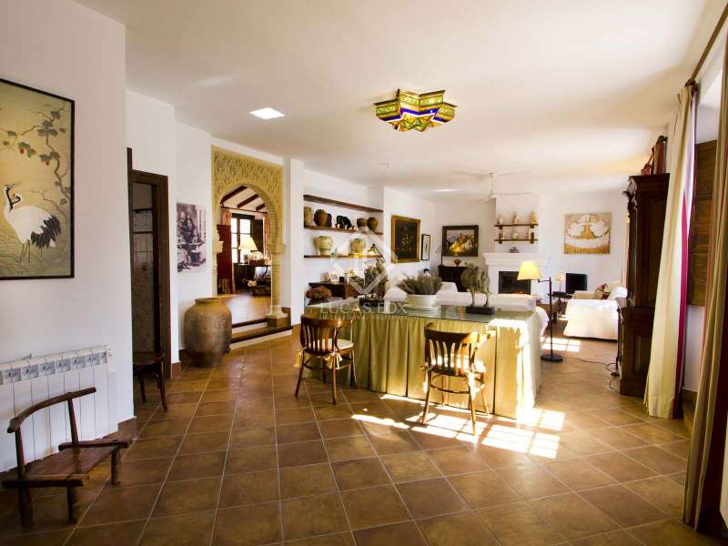 It is a pleasure to present this exclusive completely renovated manor house, located 50 minutes northeast of Malaga and 1 hour from Granada. With a built surface area of 640 m², it sits on a plot of more than 2 hectares and is surrounded by beautiful cypresses and fruit trees, as well as abundant natural fauna. The typical Andalusian country-style main house has a white facade bathed in abundant natural light and is distributed over two floors. All doors are solid wood. Upon entering the property, a large hall leads us to 2 lounges with different environments and a fireplace. On the other side of the hall we have a large kitchen with dining room, fully equipped and inspired by the style of the old Andalusian farmhouses. The 5 bedrooms, all of different elegance, with ostentatious closets, individual air conditioning and natural light, are located on the second floor. The master bedroom has a fireplace and a private bathroom. The rest of the bathrooms are distributed among the other rooms. The second building on the estate is an auxiliary property with 2 bedrooms, bathroom, living room and kitchen. Ideal for guests or service personnel of the estate itself. This splendid farmhouse also has a saltwater pool, surrounded by a lush garden area, tall trees, fountains and decorative vegetation that provide a feeling of tranquility and privacy. The farmhouse also has a tourist licence, so it is not only an ideal place to live in contact with nature, but it could also be used for a tourist rentalpurposes. Likewise, its more than 3,000 m² of warehouses and stables could be adapted subject to the corresponding permits to use the farm for livestock purposes. If you want to live in a natural environment and enjoy the essence of traditional Andalusian buildings, this is your great opportunity.