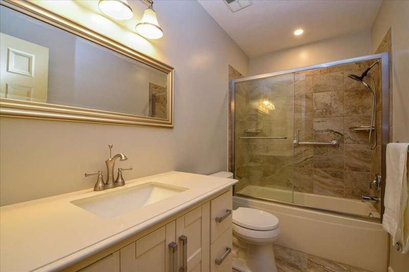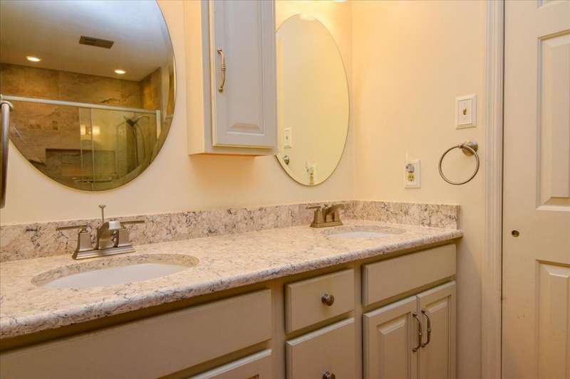 Located within walking distance of Hidden Valley Country Club on a quiet cul-de-sac street this 4355 sq. ft. 5 bedroom, 4.5 bath two story home has been completely updated. Entry level features slate foyer leading to chef's kitchen w/quartz counters, custom cabinets and stainless steel appliances, breakfast area, vaulted den w/ stacked stone FP, primary suite w/updated bath, dining room, living room/office, laundry and 1/2 bath. Upstairs has a second primary suite, 2 more generous BR's, office and another full bath. Daylight walkout basement offers in-law suite potential w/kitchenette, family/rec room, 5th BR, 4th full bath and tons of storage space. Hardwoods on entry and upper levels. All primary closets are cedar lined. Front and rear patios, deck and fenced in yard outside.