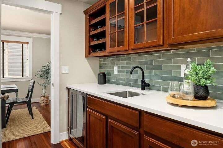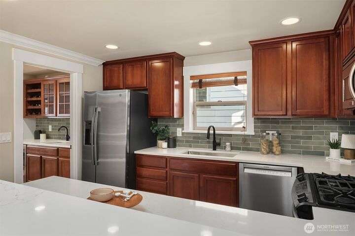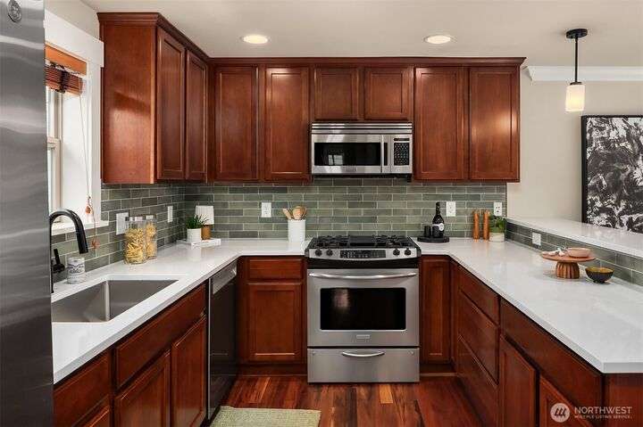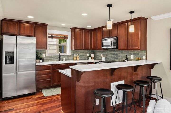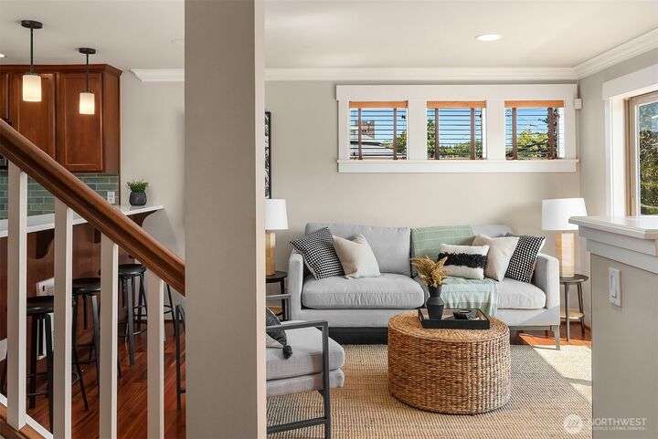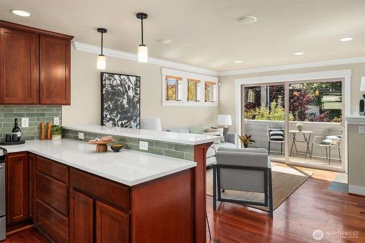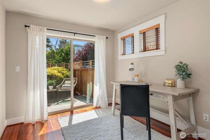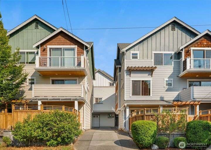 Not just another townhouse! Standalone w/a floor plan that's designed to live like a SF house, this rare gem is much more! Main floor features 2 living spaces, generous dining rm & brand new updates to the kitchen & walkthrough bar/pantry, including new counters/tile and sinks. Enjoy high-quality finishes and craftsmanship throughout, solid wood cabinetry & gorgeous Brazilian cherry hardwoods. 3 bdrm en suites & a spacious walk-in closet & balcony for the primary. Other highlights - vaulted ceilings, laundry rm, gas stove, attached garage, fully fenced private front yard + patio & beautiful curb appeal. Perfectly situated on a quiet street but just a few minutes from Ballard’s best dining and shopping… welcome to urban living at its best.