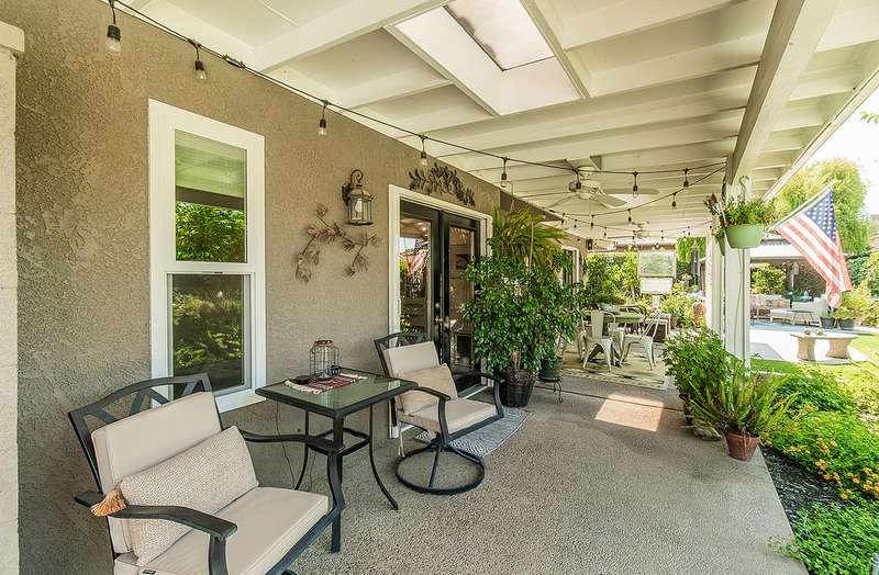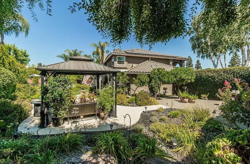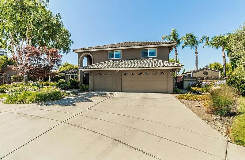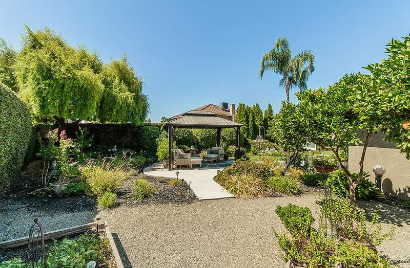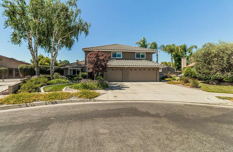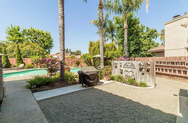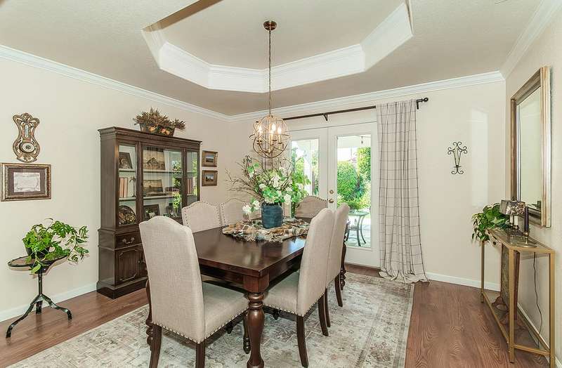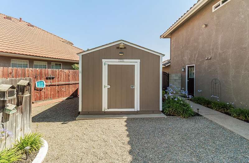 Owned Solar! This immaculate, beautifully maintained, pride of ownership 4 bedrooms and 3 bathrooms home is in one of the most desirable neighborhoods in the community on a lovely, quiet cul de sac lot. Enjoy the well designed floor plan with a lovely mirrored entryway, separate living room with a bay window, dining room with french doors leading to the rear yard, and spacious family room with a gas fireplace next to an additional eating area. The well designed and updated kitchen has a breakfast bar, large pantry, granite countertops with accented tiled backsplash, and lovely white cabinets. Special features in the home include new windows, desirable custom window treatments, tiled floors, laminate like wood flooring, coffered ceilings, loads of crown molding, and tons of storage throughout including another walk-in pantry near the laundry room. The primary bedroom is very large with a view to the backyard and very relaxing main bathroom with a walk in closet. The conveniently located additional 3 bedrooms are all good size near the hall bathroom with a shower and a tub. You and your family and guests will not want to leave this amazing backyard with a relaxing swimming pool, multiple sitting areas, patios, pergola, raised garden area, special curbing around grass areas, newer fencing, citrus trees, and a fabulous TuffShed with workbench and electricity for all your needs, The three car garage includes builtin cabinets and finished flooring too.