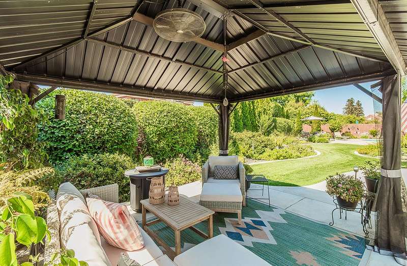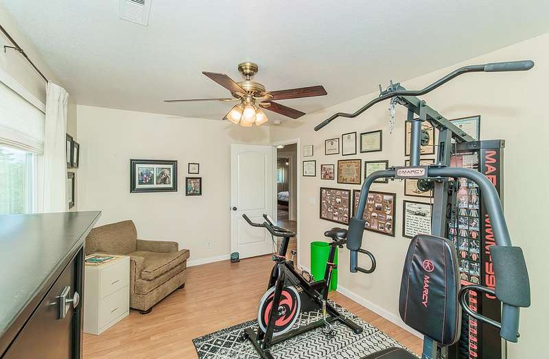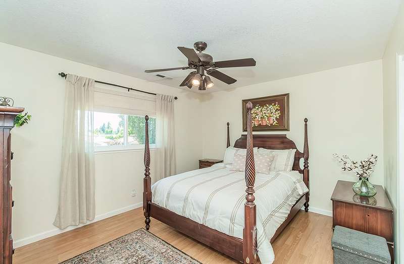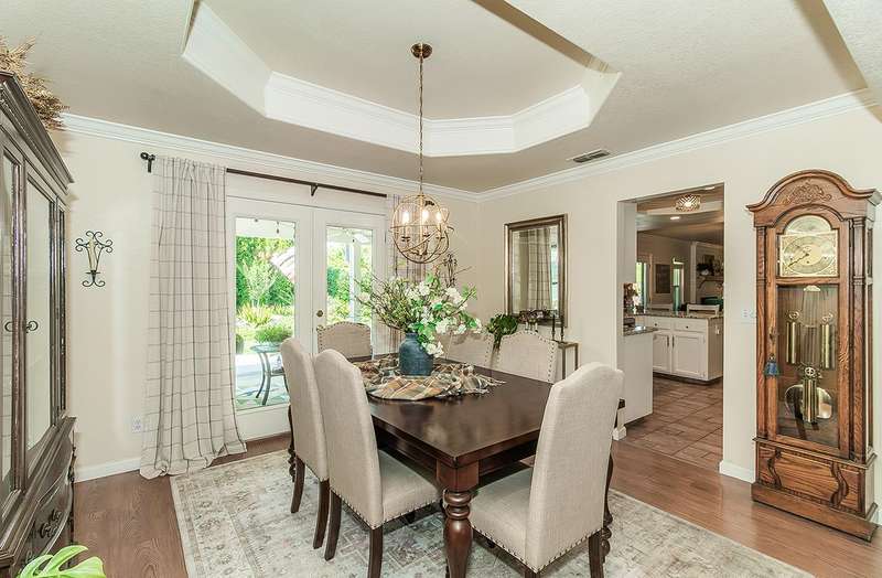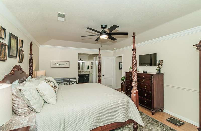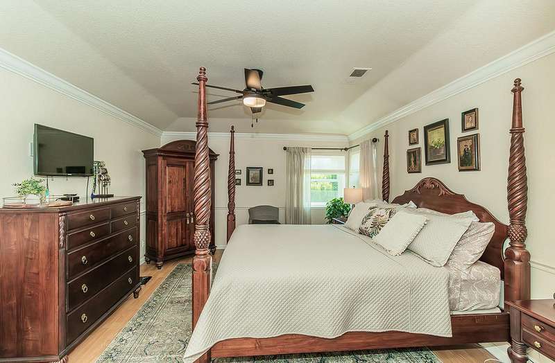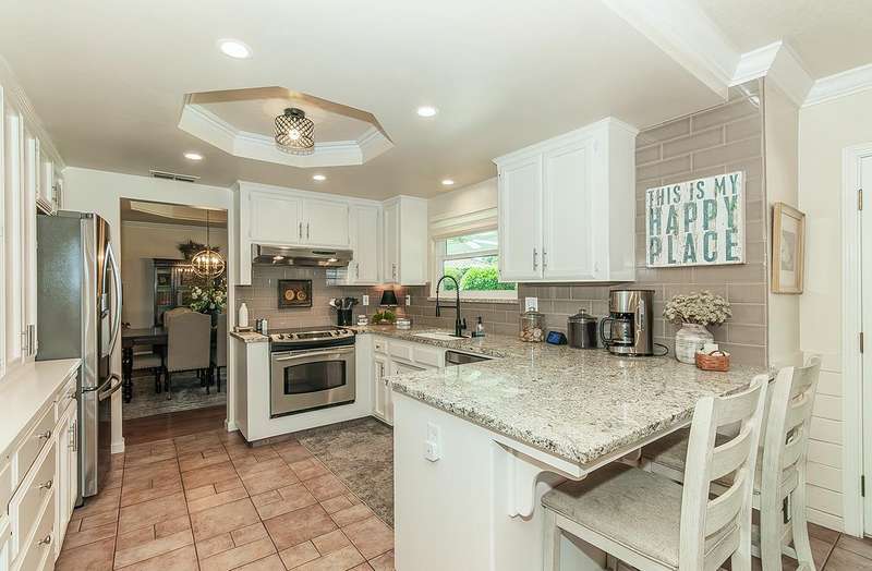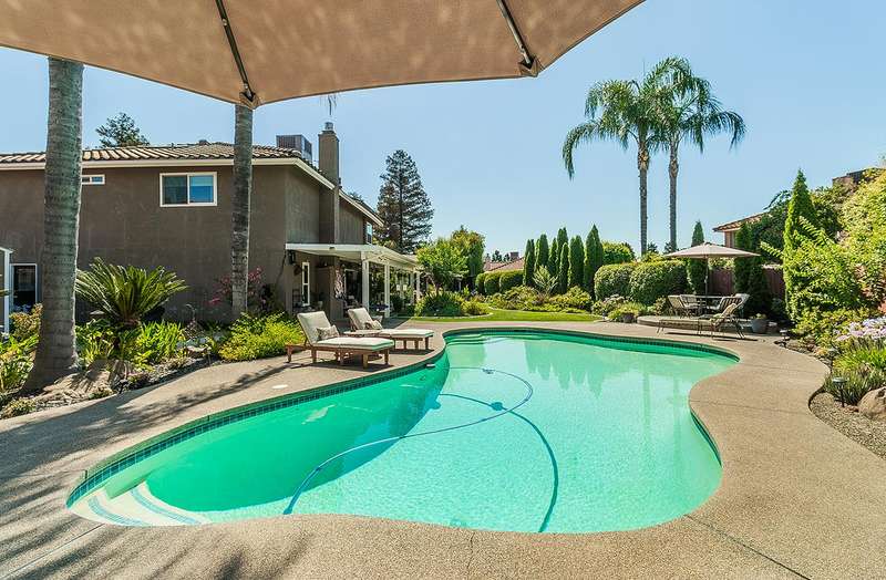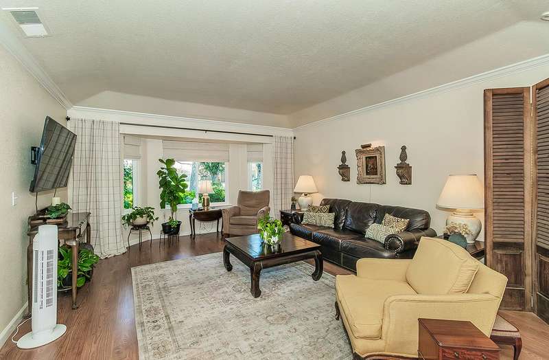 Owned Solar! This immaculate, beautifully maintained, pride of ownership 4 bedrooms and 3 bathrooms home is in one of the most desirable neighborhoods in the community on a lovely, quiet cul de sac lot. Enjoy the well designed floor plan with a lovely mirrored entryway, separate living room with a bay window, dining room with french doors leading to the rear yard, and spacious family room with a gas fireplace next to an additional eating area. The well designed and updated kitchen has a breakfast bar, large pantry, granite countertops with accented tiled backsplash, and lovely white cabinets. Special features in the home include new windows, desirable custom window treatments, tiled floors, laminate like wood flooring, coffered ceilings, loads of crown molding, and tons of storage throughout including another walk-in pantry near the laundry room. The primary bedroom is very large with a view to the backyard and very relaxing main bathroom with a walk in closet. The conveniently located additional 3 bedrooms are all good size near the hall bathroom with a shower and a tub. You and your family and guests will not want to leave this amazing backyard with a relaxing swimming pool, multiple sitting areas, patios, pergola, raised garden area, special curbing around grass areas, newer fencing, citrus trees, and a fabulous TuffShed with workbench and electricity for all your needs, The three car garage includes builtin cabinets and finished flooring too.
