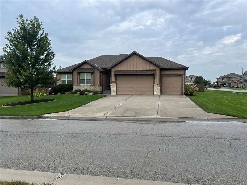 Only 9 years old, one-owner open & bright Sierra ranch plan by Stewart Builders. On a large corner lot, this home boasts beautiful hardwoods in entry, great room, kitchen & hallways. The kitchen has a large island, granite countertops, stainless appliances, and a large walk-in pantry with a convenient grocery door into the large 3-car garage for easy unloading from the car. Enjoy the covered patio off kitchen for outdoor entertainment along with the privacy of the fenced back yard. The comfortable master suite features a walk-in closet, double sinks, tub, custom tiled shower & granite. Quality built home w/designer features throughout. Upgraded HVAC system, lawn irrigation system, prewired for security system & 5 speaker surround sound, professionally finished basement with additional conforming bedroom and en suite along with large living area. Owner has done several upgrades to landscaping and this home is as good as new construction without the new construction price.