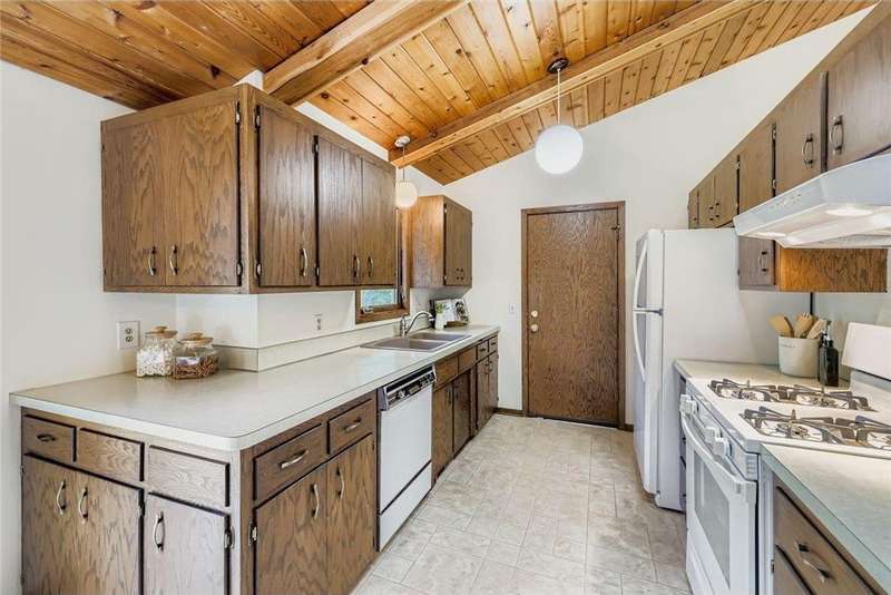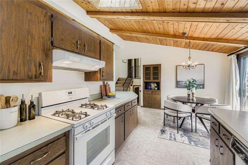 This well kept 4-level home sits on a quiet street and offers plenty of space and character. The main floor features a vaulted wood ceiling with a mid-century style that flows from the kitchen to the living room, filling the space with natural light from its east-west exposure and kitchen skylight.New carpet in the living areas and stairs, plus exposed hardwood floors for a warm, timeless look. Upstairs, you’ll find three bedrooms all on the same level. The third level includes an office that could easily be converted into a fourth bedroom with the addition of a wall. A half bath on this level also has room to expand into a ¾ bath by using the adjoining storage area.The lower level provides laundry, mechanicals, and plenty of storage, with extra space that could be turned into a hobby room. Outside, a flat backyard with a new deck is perfect for entertaining and enjoying the outdoors.