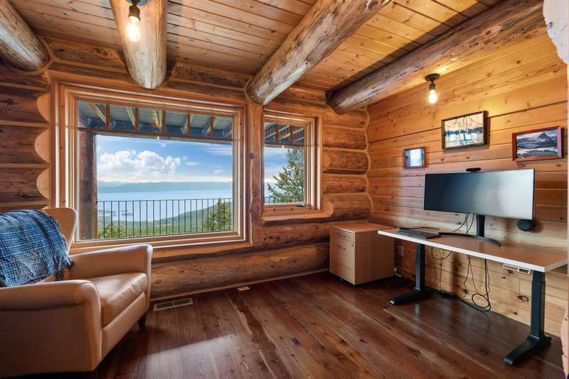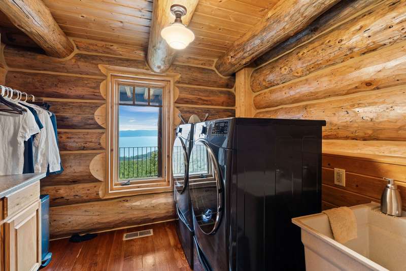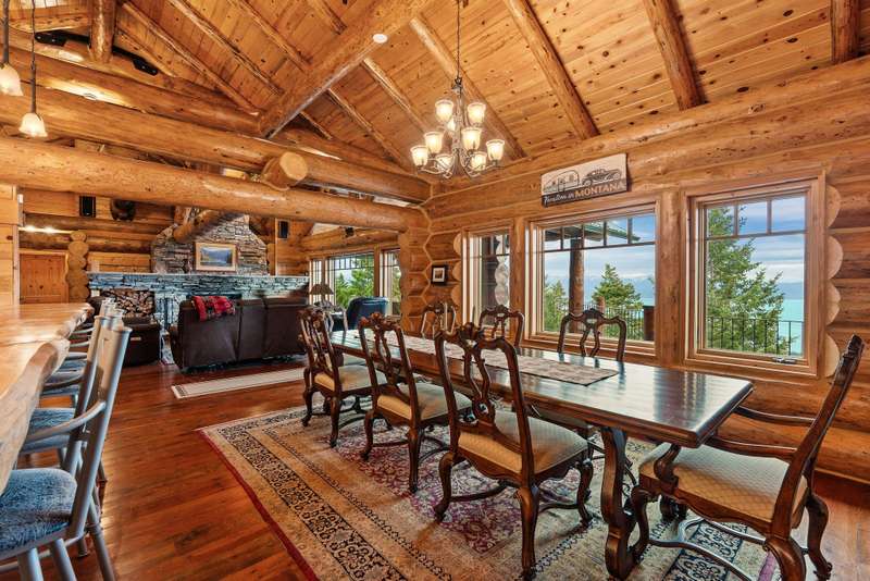 Embrace the Majesty of Montana. Imagine waking up each morning to the sunrise and stunning beauty of Flathead Lake, the rugged peaks of the Mission and Swan Mountain ranges, and the awe-inspiring backdrop of Glacier National Park to the north. This hand-hewn Montana lodge, set on 30 acres of untouched land, invites you to experience a lifestyle where nature's grandeur and luxurious living meet. With 6,400 sq. ft. of living space, this home wraps you in warmth, comfort, and the wild spirit of Montana. Step inside, you're greeted by a grand, open layout designed to bring the outdoors in. Six spacious bedrooms, four with private ensuites-offer the perfect blend of privacy and togetherness. The main floor is home to a serene primary suite, where you can unwind with a view that stretches for miles, along with a guest suite that allows for easy, single-level living. The heart of the home includes two kitchens, ideal for hosting gatherings or preparing quiet meals with loved ones, while the loft sitting area offers a peaceful spot to take in the mountain views. For those who crave adventure, the 40x60 ft. shop is ready to house all your gear-whether it's an RV, snowmobiles, kayaks, or your workshop, there's room for it all. For outdoor enthusiasts, you're just a short drive from skiing at Blacktail or Whitefish Mountain, as well as fishing, hiking, hunting, and exploring the majestic Glacier National Park. After your day of exploring the rugged landscapes or hitting the slopes, unwind in your new gym or step out onto the deck to watch the sun paint the mountains pink, casting a golden glow across Flathead Lake below.