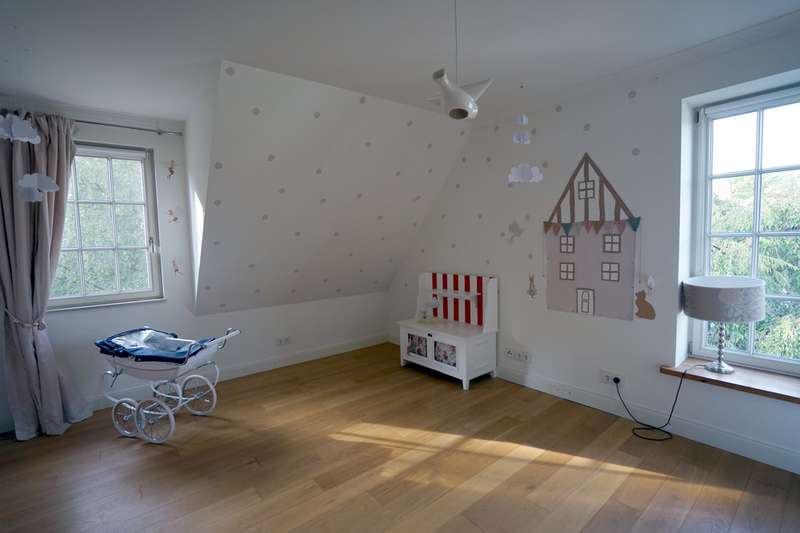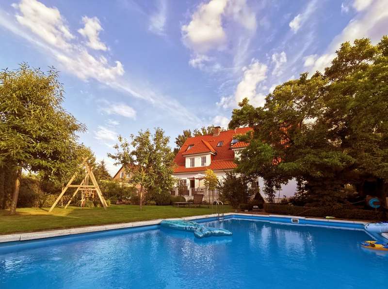 This stylish country villa was built in 1953 and completely gutted and renovated between 2011 and 2013. The exceptional property is located in Riddagshausen, one of the most sought-after residential areas in Braunschweig and just a stone's throw from the Lünischteich pond. Numerous high-quality furnishing details such as floor-to-ceiling wooden lattice windows on the first floor, solid wooden floorboards, bathrooms fitted with marble and much more guarantee a special ambience and the highest living standards. The inviting entrance hall leads into the spacious living and dining area, which includes an open kitchen. The living space extends over three floors with a total of around 312 square meters and offers enough space for the whole family with a total of six rooms and an open music room. One highlight is the parents' area on the top floor, which was converted in 2019. The open-plan concept offers a sleeping area with a direct view of the natural surroundings. A free-standing bathtub, a dressing area, a sauna, a shower and a separate WC meet all requirements for comfortable living. Particularly noteworthy is the heated outdoor pool and the two large terraces facing south and north. The mature garden has also been newly landscaped and is lovingly maintained. Several outdoor parking spaces are located directly on the plot of approx. 1853 m². The spacious full basement offers many possible uses, whether for hobbies, housekeeping, a wine cellar or as a storage room.
