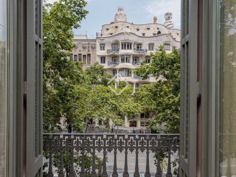Lucas Fox presents a property located on the emblematic Passeig de Gracia, on the second floor of a historic building from 1885. The entire property belonged to the Counts of Brias and was completely renovated in 2003, preserving most of the neoclassical and modernist elements, while that the facilities were adapted to meet modern standards. Being on the second floor, it allows you to enjoy privileged views of La Pedrera by Antoni Gaudí. The quality of the finishes is excellent throughout the home. The living area is divided into two rooms, with an area of 50 m² and consists of 3 joined balconies that run along the façade, projecting privileged views of La Pedrera. The dining area connects with a fully equipped minimalist kitchen located in the central part of the home. Next to this, we find a single bedroom suite. In the west wing of the property is the night area, made up of 3 bedrooms, of 2 of which share a bathroom and the last one belongs to the master suite with a complete bathroom and views of a beautiful block patio garden. The combination of white walls and parquet flooring gives the property an unmistakable feeling of spaciousness, and its position allows plenty of natural light to enter throughout the day. Ideal as a first residence or as an investment, given its characteristics and location.
