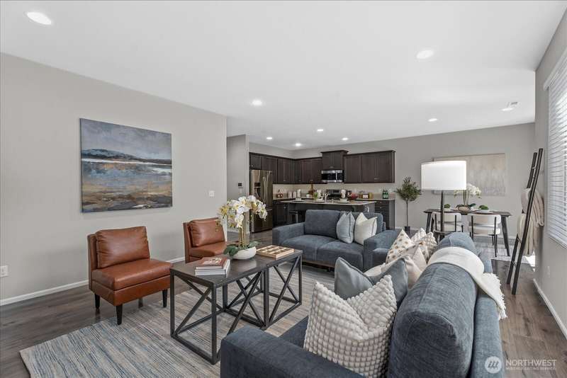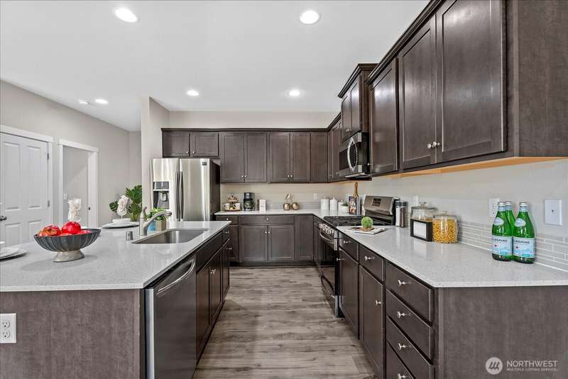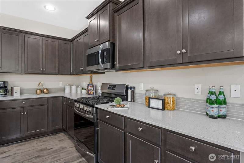 Welcome to the Rockport plan in The Grove! This impeccably maintained 5-bed, 2.75-bath home blends modern comfort with thoughtful design and quality finishes. The open layout features a spacious great room with gas fireplace and a gourmet kitchen with quartz counters, stainless steel appliances, gas range, oversized island, pantry, and generous dining area. Main-floor bedroom and ¾ bath. Upstairs boasts 4 bedrooms, large bonus room, laundry, and a luxurious primary suite with French doors, dual walk-in closets, double sinks, tile shower and soaking tub. Enjoy a fully fenced yard, fresh interior paint, newer upstairs laminate flooring, 220V EV outlet, and a 2-car garage. Prime Lake Stevens location near highways, shopping, parks, and dining.