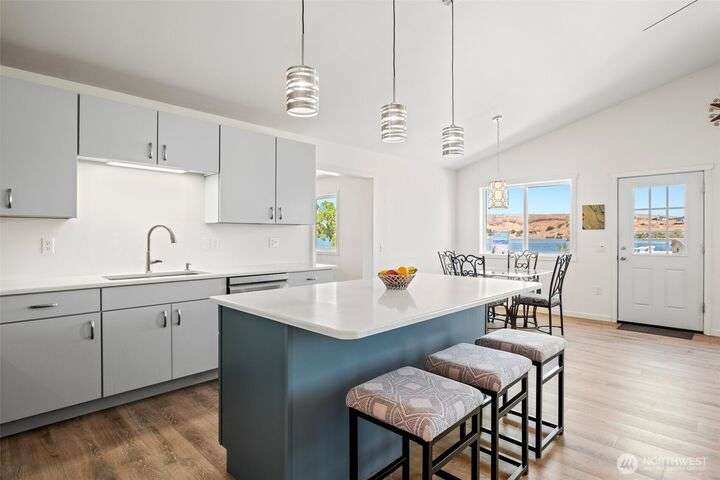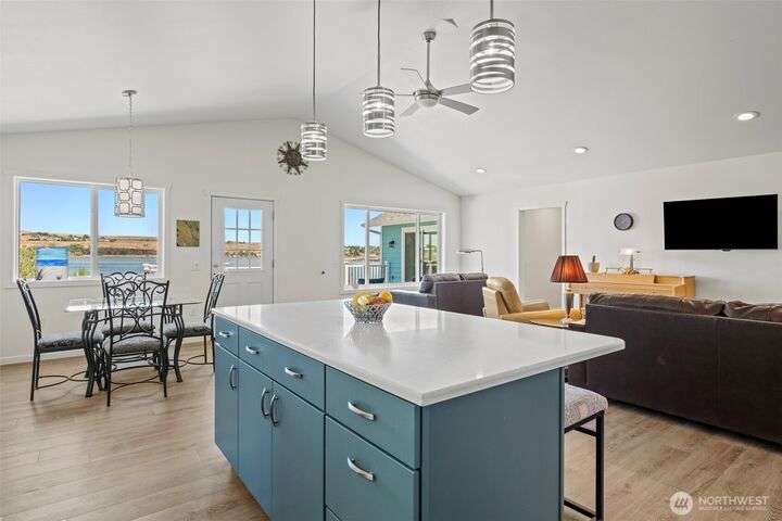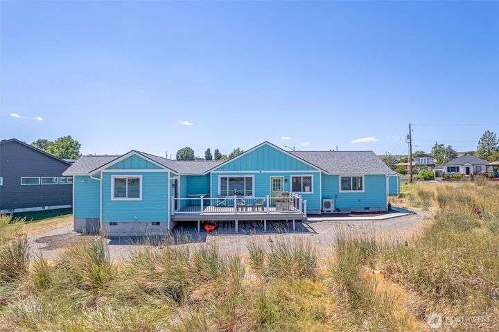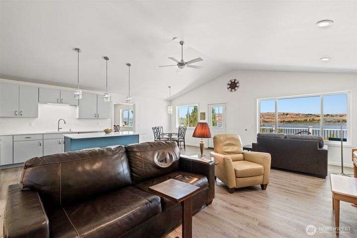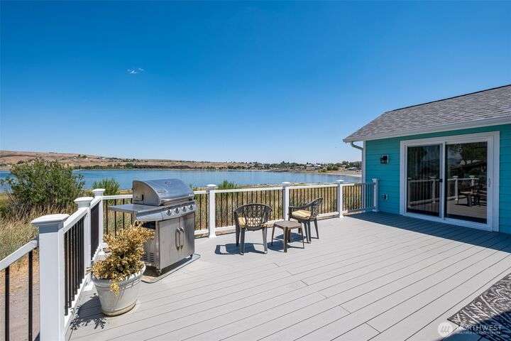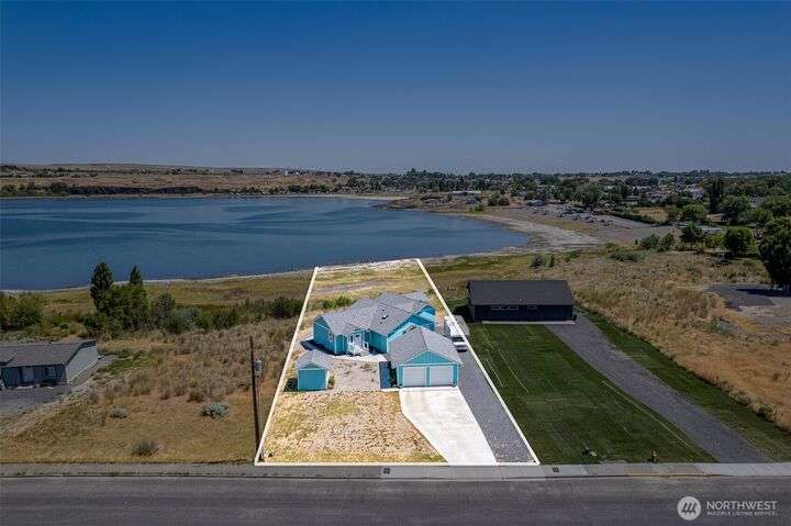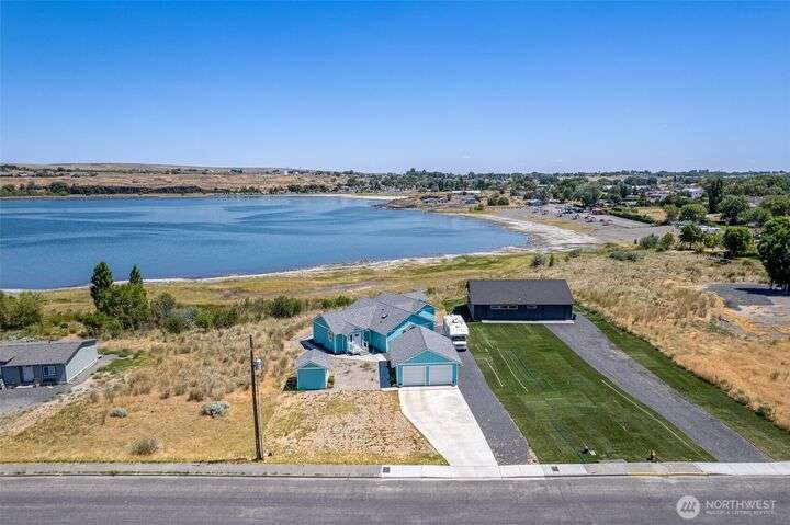 Must see! Waterfront property on quiet, peaceful Soap Lake is hard to come by. This lovely home has been specially situated on this large, 30,056 sq ft lot to take full advantage of the lake views. From the expansive deck to the picture windows in the great room and primary bedroom, you will enjoy this tranquil environment, watching the beautiful sunrises and the nesting birds. The kitchen lends itself to fixing gourmet meals while guests sit at the large, quartz counter top island watching your magic. Double car garage, storage shed, RV parking and natural habitat for nature's wildlife make this property very comfortable year around. Own your private access to the Healing Waters of Soap Lake. Call today!