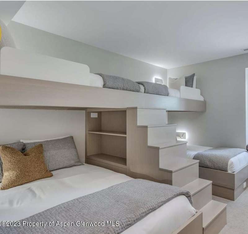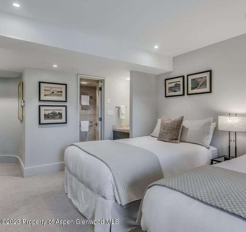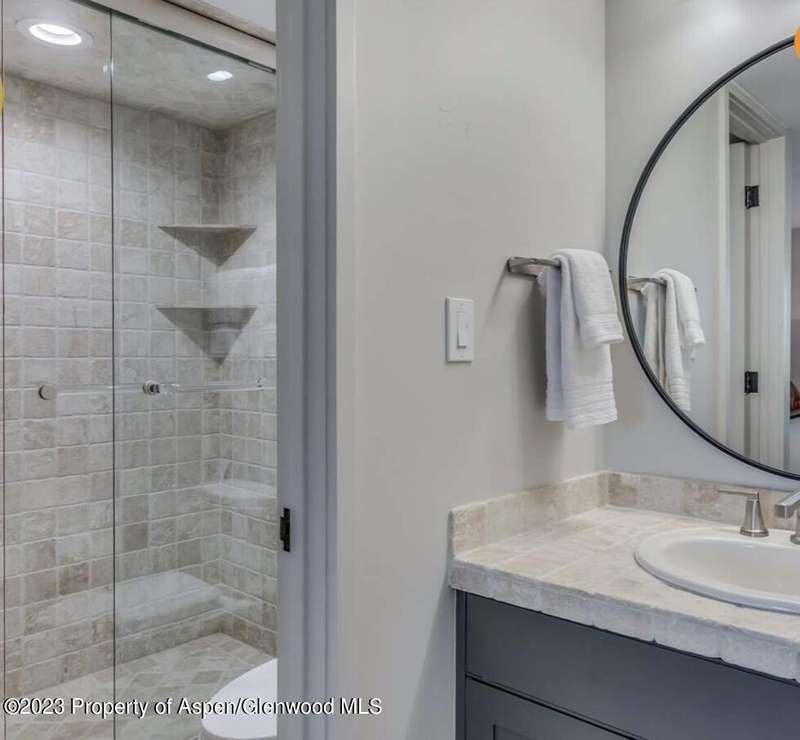 This luxury private home leaves no stone unturned for your Snowmass vacation! With major renovations completed in June 2022, this mountain-modern chalet is teeming with all of the latest upgrades. Arrive en masse and spread out as up to thirteen guests can comfortably stay at this mountain home. Both upper level and lower level family rooms enable larger parties to enjoy games, big screen TV, and other social gatherings. Alternatively, take advantage of the hot tub deck out back or the new patio & fire pit in front. With indoor and outdoor seating for group meals, this is the perfect setting for a big family and friends getaway in summer and winter. And don't worry about parking -- there is ample room for three large vehicles. This private home has an abundance of space. The luxurious Master bedroom is on the upper level, boasting a high vaulted ceiling, smart TV, a sitting area, a large luxury bathroom with a heated floor, and lots of storage for a longer stay. All lower level bedrooms feature en-suite bathrooms, smart TVs, and desks for private work or calls. The main living level consists of a large open floor plan under soaring vaulted ceilings, featuring a designer kitchen with all new appliances and an island with 5 bar stools. Enjoy your meals around the dining room table or overlooking the valley at the round granite table in the family room. Lounge with your guests by the wood-burning fireplace or venture outside to the front or back deck. If you are combining work with pleasure or just looking to get away from the crowd, head up the spiral staircase to the office loft, where you will find an oversized desk equipped with a printer and served by the property's high-speed wireless internet as well as a pair of chairs to settle into with a good book. If you need to get the juices flowing, head to the lower level and take advantage of the Nordic Track Mirror workout system, stocked with a full set of barbells and bands, as well as complimentary workout programs -- or watch the big game and take advantage of the downstairs beverage station. Don't forget about the amazing location just up the hill from Snowmass Mall and Base Village. Ski access is downhill both ways, courtesy of the Adams Ave ski run that intersects with Wood Road just down the hill (ski out) and with Edgewood Lane just around the corner (ski in). The spacious outdoor deck enjoys privacy from the surrounding forest and comes complete with a sunken hot tub, BBQ/gas grill, plenty of furniture, and a basketball hoop in driveway. Enjoy a soak after skiing, relax in the home's spa-like steam shower, or just gather around the fire pit to relive the day's adventures