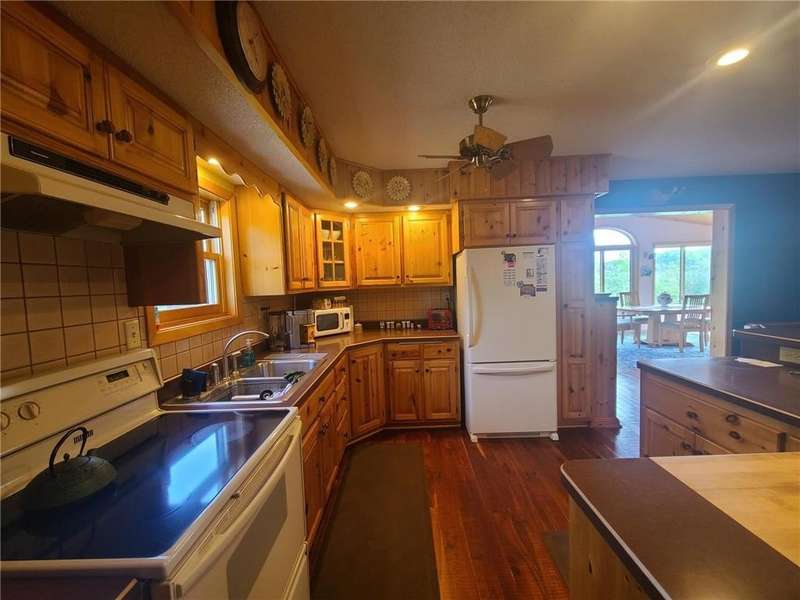 Very rare and secluded 40 acre paradise featuring shoreline on 2 deep private lakes full of fish, outstanding woods, lots of wild life including deer, bear, turkey, beaver, fox, coyote mink, otters and more. This is a hunter’s, fisherman’s, general outdoor person’s very private retreat yet only 2-3 miles from town. The property includes a very well maintained 3 bedroom home featuring large rooms with outstanding views. The third bedroom is currently being used as a den, but can be used as bedroom with new installed septic system. There are two garages, one heated and one with a shop that is also heated. 2 storage buildings on the yard. There is an additional storage building near each of the lakes for all your fishing gear etc. There is a great garden area and a number of trails that run throughout the property. If privacy is important to you this is a must see. An additional 40 acres with approximately 1000 feet of lakeshore is available.