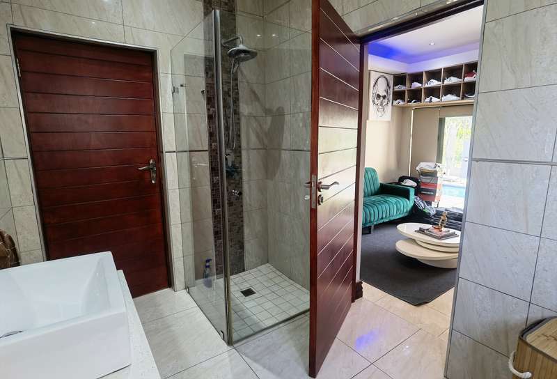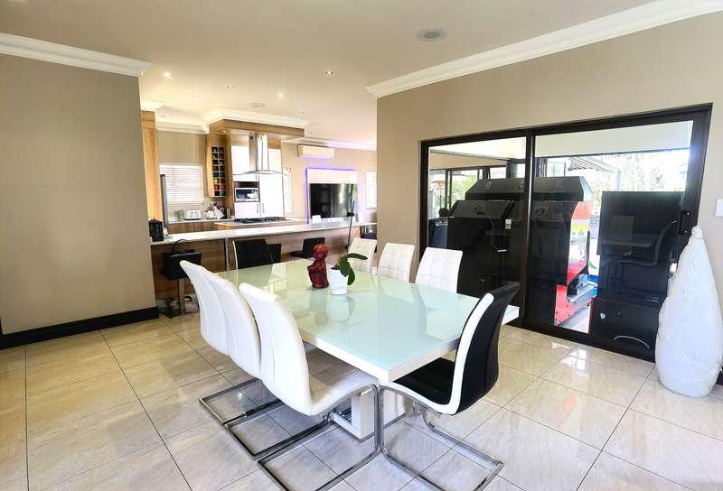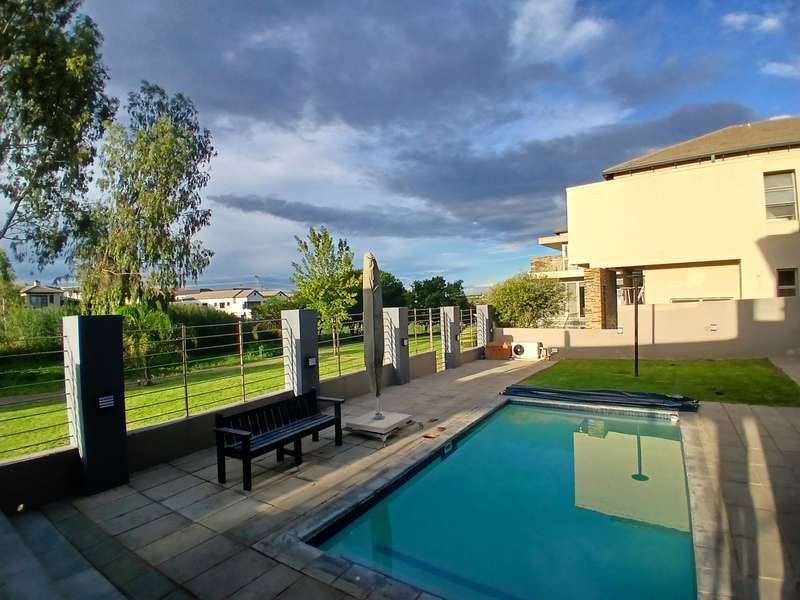 A charming lifestyle awaits families at Blue Valley Golf and Country Estate. There are many facilities at this estate, including a 2000m2 clubhouse, driving range, practice facilities, fitness center, tennis courts, squash courts, basketball court, soccer field, administration center, convenience store, and many parks. In the prestigious Blue Valley Golf Estate, this stunning 4-bedroom property offers sophistication and indulgence. Featuring refined design and modern functionality, this residence is unlike anything else. A mesmerizing water feature greets you upon entering, its gentle flow accented by strategic lighting that sets the tone for the elegance within. A grand double-volume formal lounge flooded with natural light and adorned with luxurious furnishings greets you after this enchanting introduction. An elegant gas fireplace serves as the centerpiece of the room, inviting cozy gatherings. This palatial home's heart is a culinary sanctuary that transcends the ordinary. It boasts a professional-grade gas hob, undercounter oven, and an expansive central island with Caesar stone countertops, an epitome of culinary excellence. The ambient light in this epicurean haven creates an aura of effortless refinement and elevates culinary creations to art.In addition, a separate scullery is ready to meet all culinary needs.Immediately adjacent to the kitchen is the formal dining area, where a rhythmic play of light and shadow creates a relaxed atmosphere for breakfasts or intimate gatherings. Luxury and leisure meet in perfect harmony in the exquisitely crafted entertainment area. An enchanted retreat illuminated by a symphony of lights is a haven for the discerning entertainer. Guests can indulge in moments of culinary delight amidst the splendor of nature while sitting at a custom prep station overlooking the garden and the pool.An ambiance of serenity and comfort awaits in the ground floor guest bedroom, where every detail has been meticulously designed to impart a sense of repose. Upon ascending to the upper level, you will find a world of indulgence, from the cozy embrace of the pajama lounge to the sumptuous luxury of the master suite and two additional bedrooms. Additionally, there are three garages, staff quarters, air conditioning, a solar panel, so much more. Easy access to Samarand Rd which joins the N1 highway, close to Blue valley mall, fuel stations, Jacaranda college & Pre-primary, Coccolino's early childhood center, Uitsig high school, Medi clinic, International Airport, and many more. For a chance to view this property, contact me today