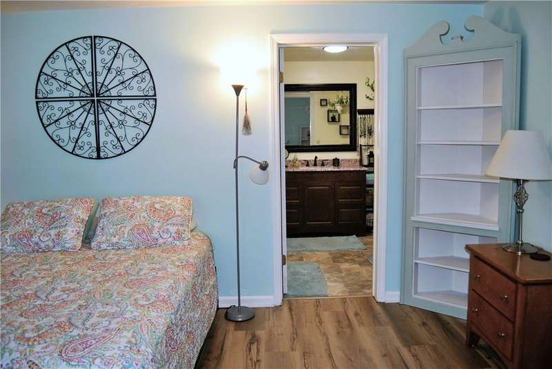 Welcome to this meticulously maintained upper-floor condo that's truly move-in ready. The showstopper is the expansive kitchen, completely renovated and doubled in size, featuring elegant Corian countertops, porcelain tile flooring, and a large pantry for ample storage. The kitchen is equipped with stainless steel appliances. This well-cared-for home has been continuously updated with luxury vinyl plank flooring installed throughout the living room, hall, and both bedrooms. Recent major improvements include brand new vinyl windows with full screens throughout, a new central air conditioner, new hot water heater and humidifier, and a furnace with new gas valve and motherboard that's inspected and cleaned annually. Both bathrooms feature updated vanities and floors with new shower fixtures in the primary bath. Additional features include a 1-car attached garage with new door, opener, and pin-pad entry, a large storage closet with custom shelving, an updated storage room and laundry room, plus fresh paint and new light fixtures throughout. This turnkey property offers the perfect combination of modern updates, thoughtful maintenance, and comfortable living spaces ready for you to call home. Easy Living at it's Finest!