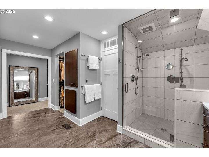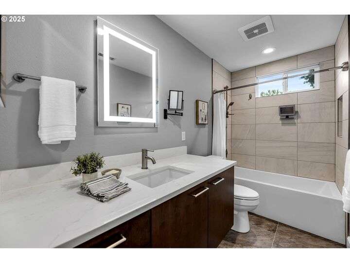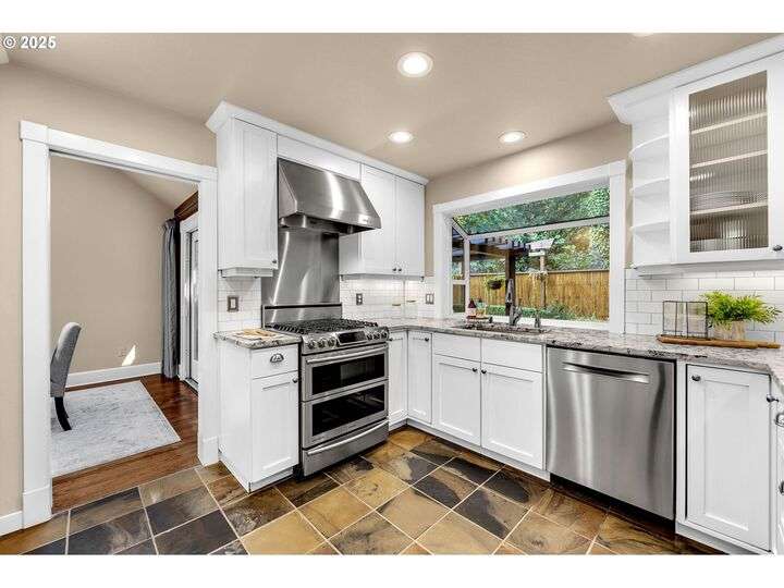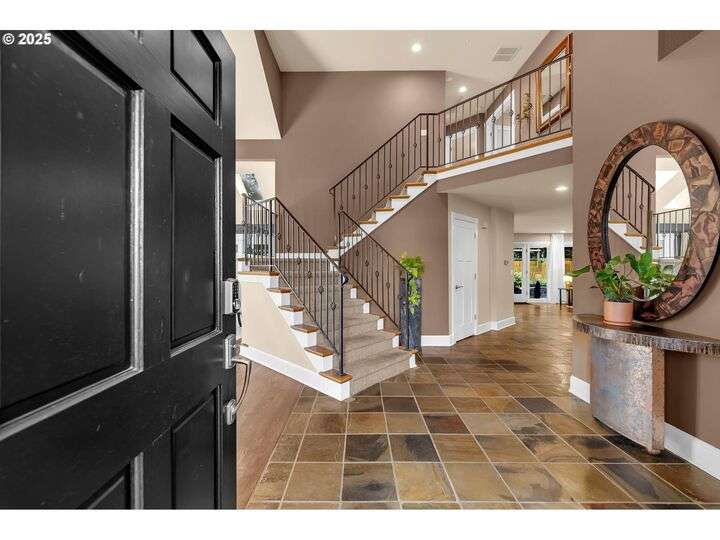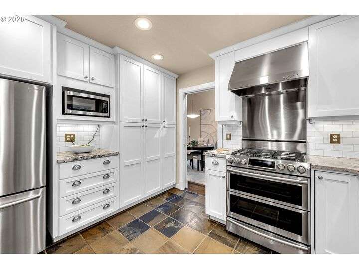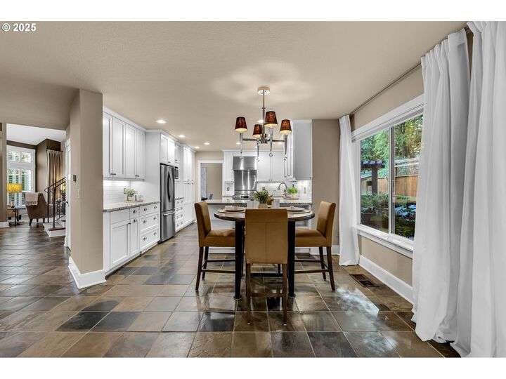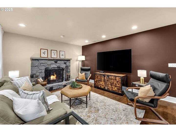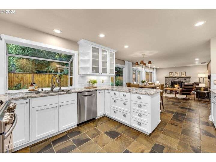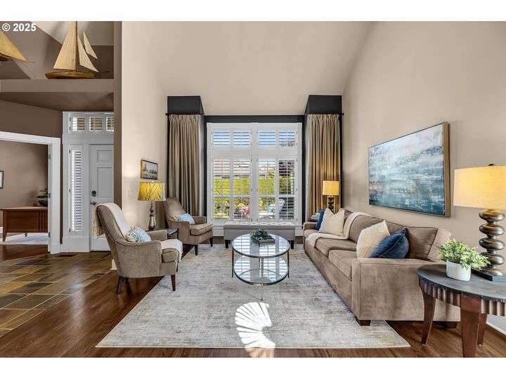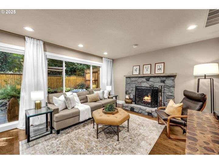 Welcome to this beautifully updated home in desirable Steamboat Landing! Bright and inviting, the living and dining rooms showcase vaulted ceilings, creating the perfect space for gathering and entertaining. The remodeled kitchen features stainless steel appliances, gas range with built in hood vent, quartz counters, and opens to the breakfast nook and family room highlighted by a stone fireplace—all overlooking a private, landscaped backyard. The main floor also includes a dedicated office with decorative beams and custom built-ins, a convenient laundry room, and powder bathroom. Upstairs, the primary suite offers a spa-inspired bathroom including heated floors, a custom tile shower with dual shower heads, a modern vanity with quartz countertops and under cabinet lighting, and built-ins including a washer/dryer, storage, ironing board, and folding table. Two spacious closets provide even more functionality. Two additional bedrooms and a fully remodeled bathroom with a soaking tub/shower combo complete the upper level. Step outside to dine under the pergola or simply relax in the lush backyard oasis. Just two houses down, a private path leads to the neighborhood’s exclusive waterfront park and beach along the Columbia River—perfect for enjoying trails, sandy shores, and stunning sunsets. Additional updates include solid core doors, full replumbing of house, Certainteed Presidential 50 year roof, and more! This home blends modern updates, thoughtful design, and an unbeatable setting to elevate everyday living.