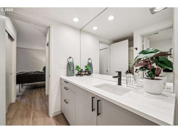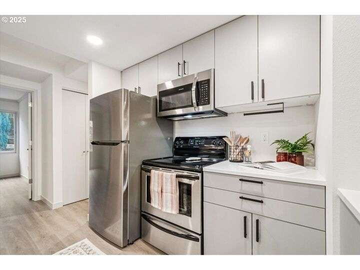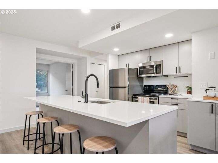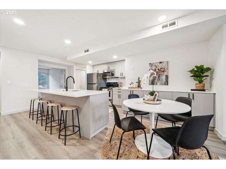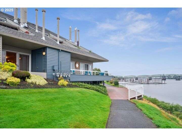 Rare, single-level condo with stunning Columbia River views. This ground-floor unit has been thoughtfully remodeled and features 2 bedrooms, 1 bath, quartz countertops, new flooring throughout, and stylish modern fixtures. The open-concept great room includes a cozy fireplace and flows seamlessly to a private patio—perfect for relaxing or entertaining. The kitchen is equipped with stainless steel appliances, a central island, and ample cabinet storage. Both bedrooms are generously sized, with the second ideal for guests or a home office. Reserved covered parking included.Enjoy resort-style living at Columbia Point: indoor and outdoor pools, hot tub, sauna, clubhouse, and riverside walking paths. All just minutes to the Vancouver Waterfront, downtown Portland, and PDX.