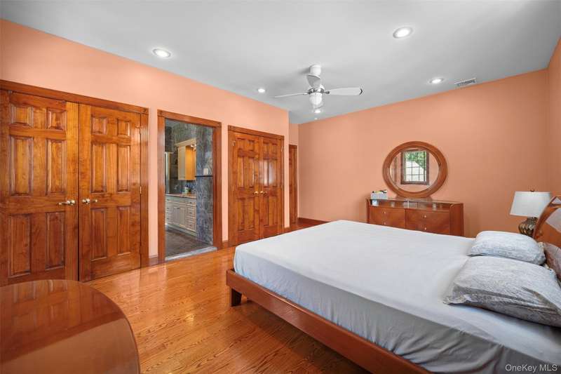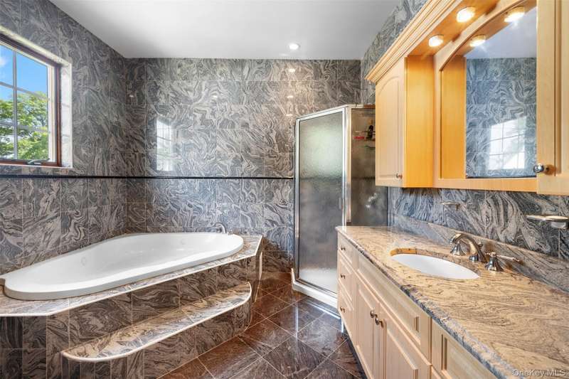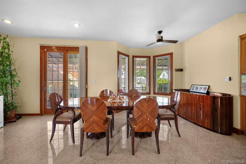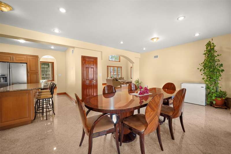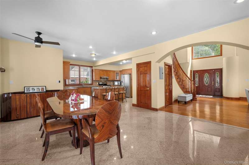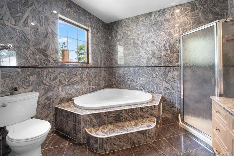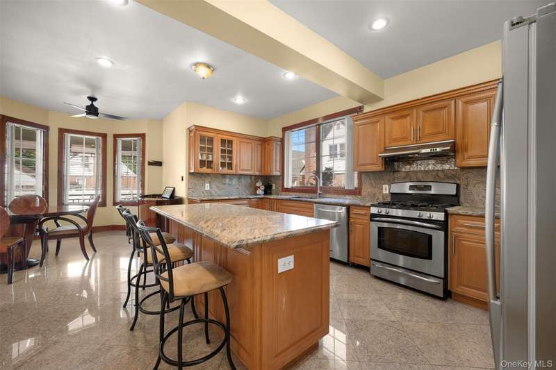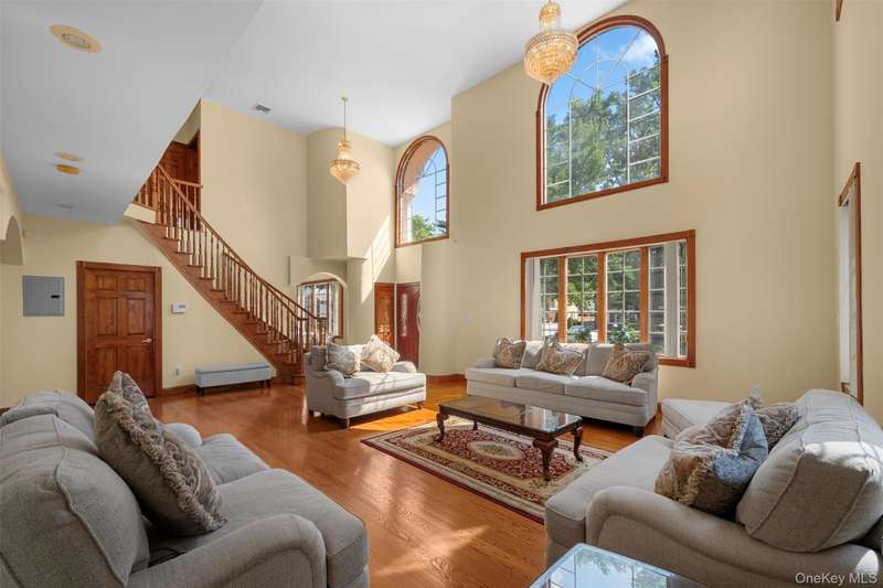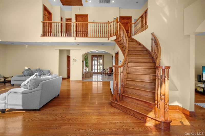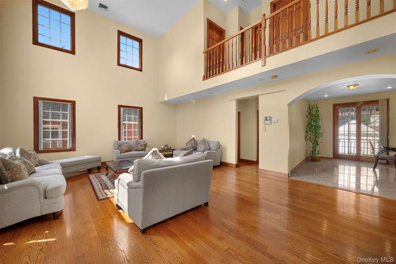 This beautifully reimagined custom brick home with soaring columns offers luxurious living with modern updates from the ground up, situated on a 60x100 lot. Boasting 3,105 sq ft of refined space, this residence features five spacious bedrooms and three and a half bathrooms, including a first-floor bedroom perfect for guests or generational living. Step into the formal living room adorned with oversized Anderson windows, two elegant chandeliers, and a grand circular staircase. Designed with ample natural light, the space is surrounded by large windows that let sunlight pour in throughout the day. The open layout and bright ambiance make this living room an ideal setting for relaxing, entertaining, or spending quality time with loved ones. Custom-made doors throughout the home add unique charm and craftsmanship. Step into a beautifully lit family room that radiates warmth and comfort. Elegant arched walkways lead in and out of the room, adding architectural character and a soft flow between living spaces. The chef's kitchen is a dream, featuring custom cabinetry, granite countertops, stainless steel appliances, and a sunny eat-in area. The formal dining room is ideal for entertaining with French doors opens to a rear deck with awning, leading to a private backyard. Upstairs, find four generously sized bedrooms. The primary suite offers a spa-like retreat with a soaking tub, walk-in closets, and ample natural light. The fully finished tiled basement adds valuable space with a rec room, surround sound, half bath, laundry room, utility room, and private access to the backyard. Additional features include hardwood floors and recessed lighting throughout, two-zone central heating system, an elegant design with modern conveniences, an ADT security system, and close proximity to schools, parks, shopping, transportation, and houses of worship. This is more than a house - it's a place to call home.