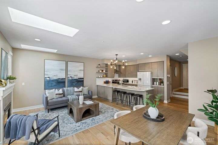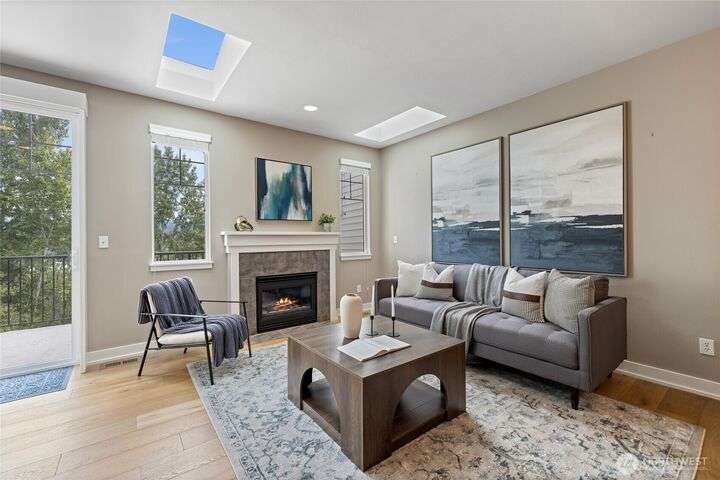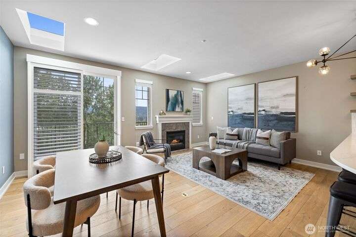 Step into comfort and style in this beautifully maintained townhome offering all the modern touches you’ve been searching for. Gleaming hardwood floors flow throughout, while natural light pours in through stunning skylights. Enjoy morning coffee or evening sunsets on your private deck/balcony. The spacious walk-in closet and open floor plan provide both function and flexibility. Nestled in a highly walkable neighborhood, you're just steps from Woodinville wine country, shops, dining and more. This is your canvas to style, your opportunity to act—homes like this don’t last long. Don’t wait—make this warm, inviting space yours today!