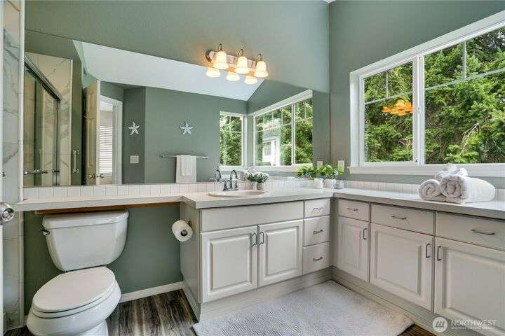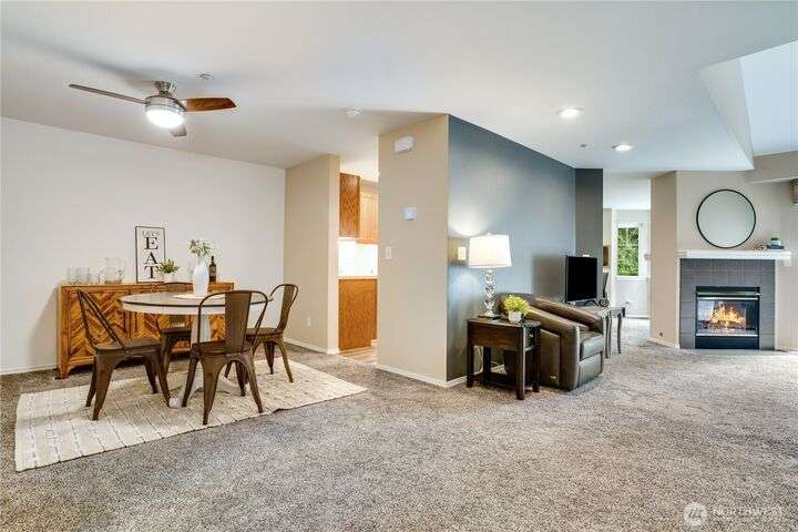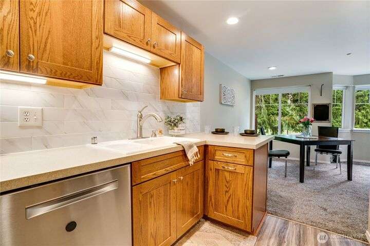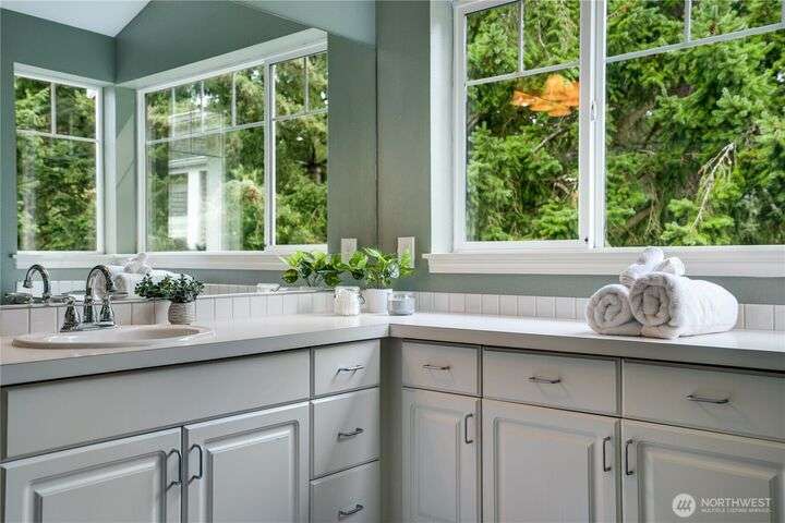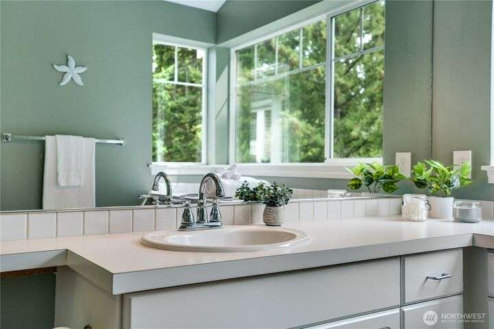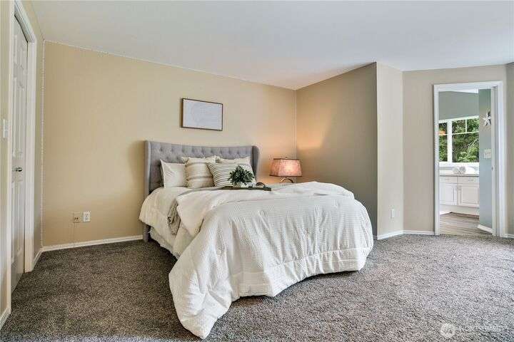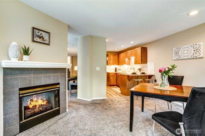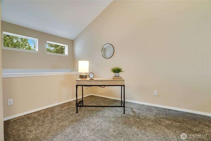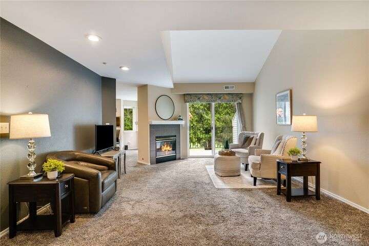 This lovely townhome sits right on the 18th fairway of Northshore Golf Course, offering serene views year-round. Inside, enjoy vaulted ceilings & thoughtful updates throughout including newer appliances & soft-close solid wood kitchen cabinets. Spacious layout features 2 bedrooms PLUS a large loft perfect for an office or bonus rm. Both bedrooms have walk-in closets and the primary ensuite shower has been stylishly updated. Enjoy the breakfast nook & family room with two-sided gas fireplace, private deck, two-car garage, newer HVAC + water heater, and a CLEAN inspection report. Conveniently near I-5, 167, and 509 with easy access to trails & golf clubhouse. Pets are welcomed at The Links, in fact there is a dog park just across the street!