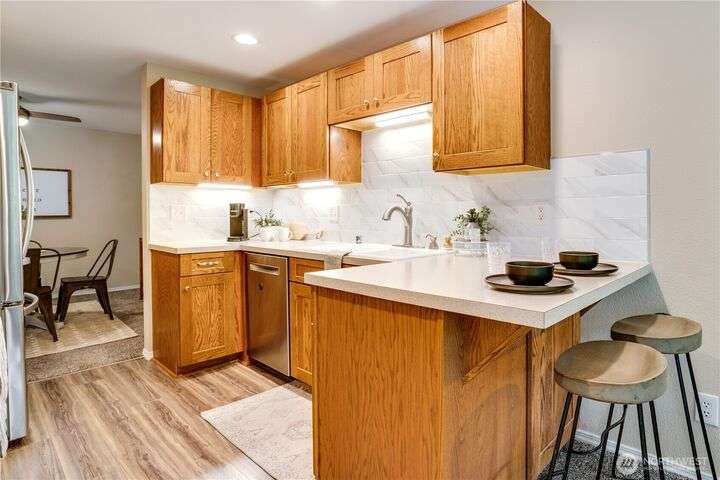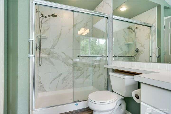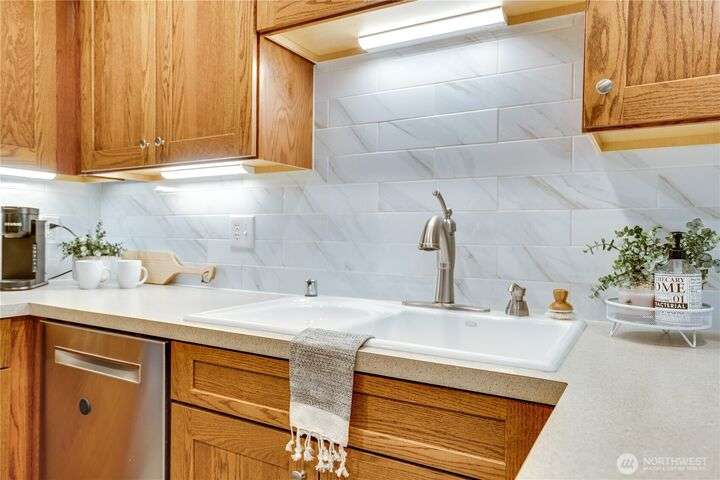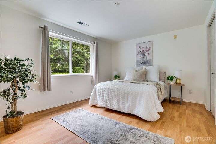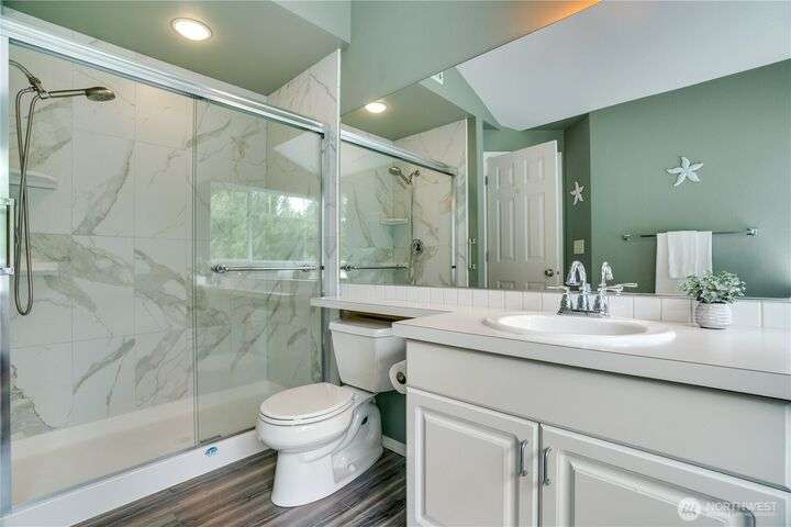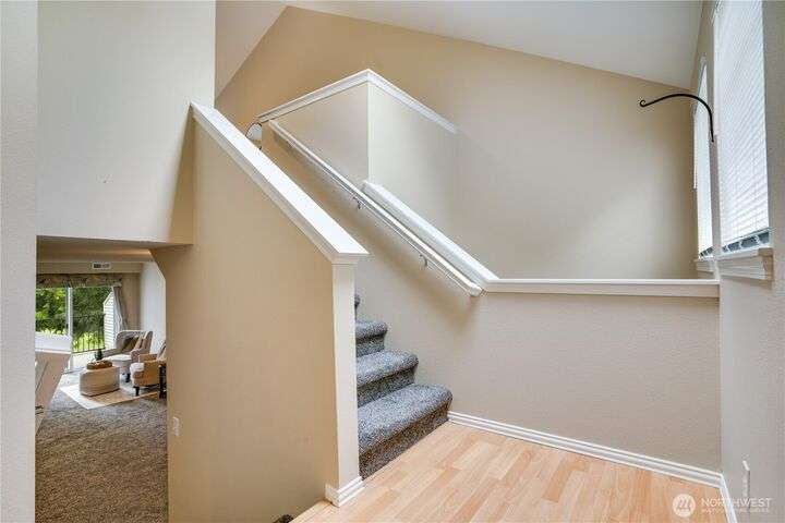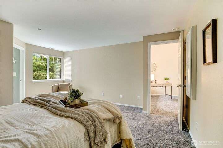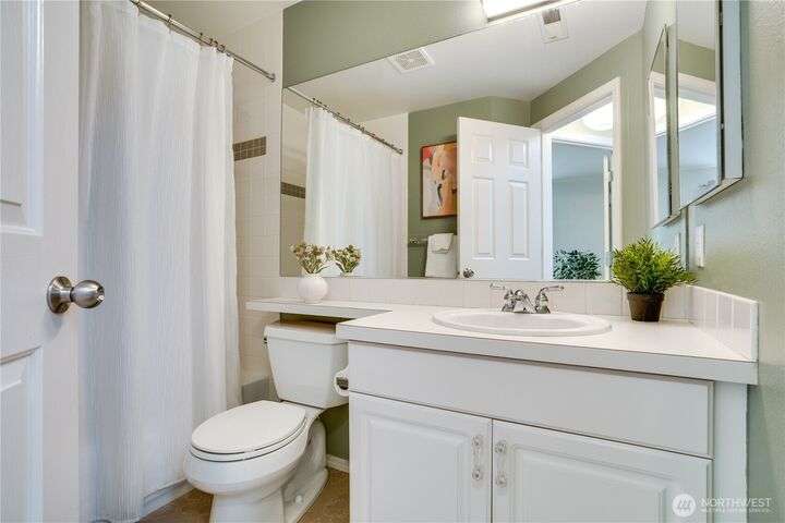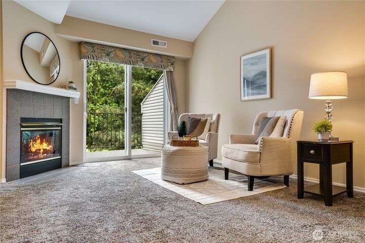 This lovely townhome sits right on the 18th fairway of Northshore Golf Course, offering serene views year-round. Inside, enjoy vaulted ceilings & thoughtful updates throughout including newer appliances & soft-close solid wood kitchen cabinets. Spacious layout features 2 bedrooms PLUS a large loft perfect for an office or bonus rm. Both bedrooms have walk-in closets and the primary ensuite shower has been stylishly updated. Enjoy the breakfast nook & family room with two-sided gas fireplace, private deck, two-car garage, newer HVAC + water heater, and a CLEAN inspection report. Conveniently near I-5, 167, and 509 with easy access to trails & golf clubhouse. Pets are welcomed at The Links, in fact there is a dog park just across the street!