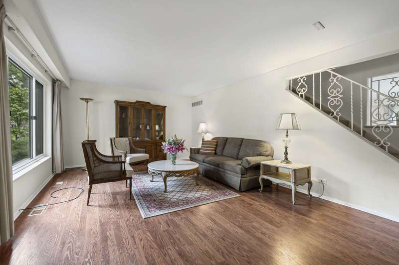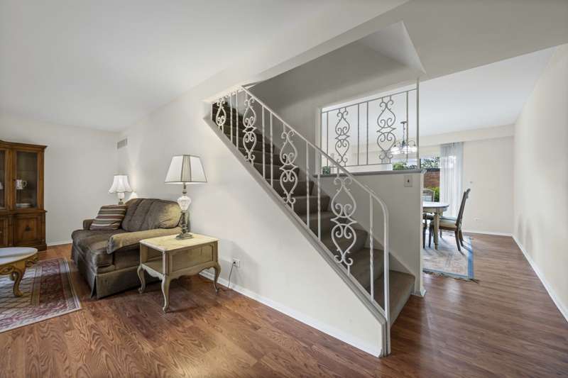 Welcome to Carriage Hill! This beautifully updated 3 bedroom, 2.1 bath two-story townhome offers a perfect blend of charm, comfort, and modern updates. Step inside to find luxury vinyl floors throughout the main living areas and hardwood flooring throughout the 2nd floor in the bedrooms, creating a warm and timeless feel. The bright and airy living room is highlighted by a large picture window, filling the space with natural light. Upstairs, the spacious primary suite features a wall of closets, excellent natural light, and a private bath. Two more bedrooms and a full hall bath complete the second level, with a hidden staircase within the 2nd bedroom closet that leads to a remarkable attic with 8-foot ceilings and semi-floored, an incredible amount of additional storage space. The private fenced yard with a patio is perfect for entertaining, while the detached 2-car garage adds convenience. Major components have all been recently updated for peace of mind: Home refreshed (2025), A/C, furnace & humidifier (2024), thermostat (2024), washer & dryer (2023), water heater (2023), refrigerator (2022), and windows & sliding door (2018). Located in a prime Glenview location, close to parks, shopping, dining, and top schools, this Carriage Hill gem is move-in ready and not to be missed!