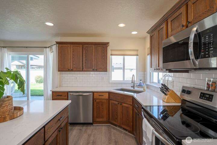 Great modern updates, brand new freshly painted interior, great living space and lots of room! This 2-story home has 4 bedrooms and 2.5 baths. The foyer opens into an inviting, open-concept floor plan. Kitchen features newer stainless-steel appliances & quartz countertops with beautiful wooden cabinets and tile backsplash. Living room has a fireplace and LVP flooring. Fully fenced backyard a great patio and spacious 3-car garage--plenty of room for vehicles, storage, or hobbies. With thoughtful design & touches throughout, this home blends modern comfort w/ everyday function. This home is in a great spot in the Prairie Bluff neighborhood.
