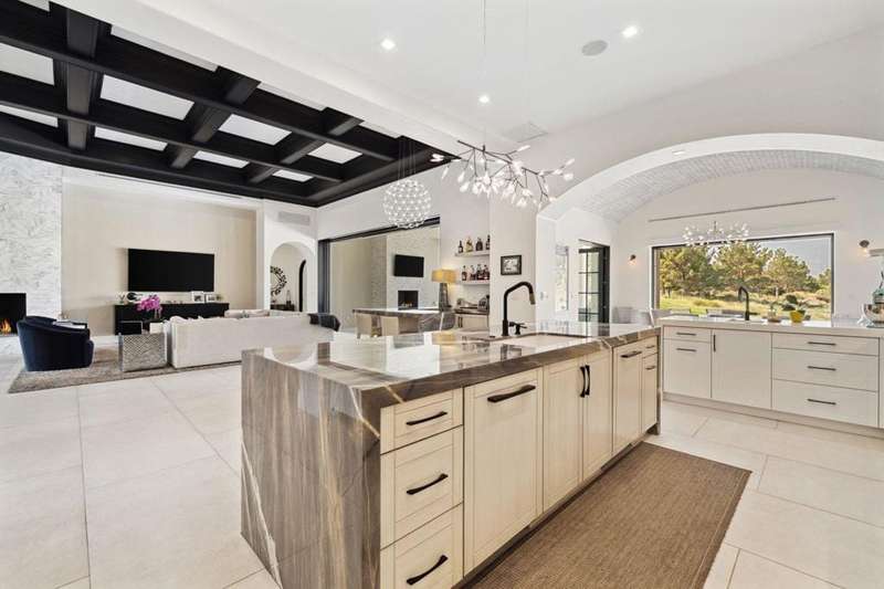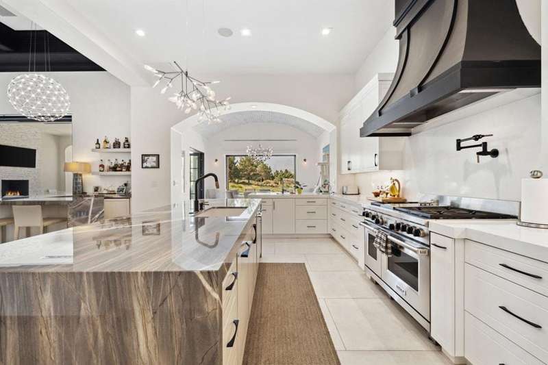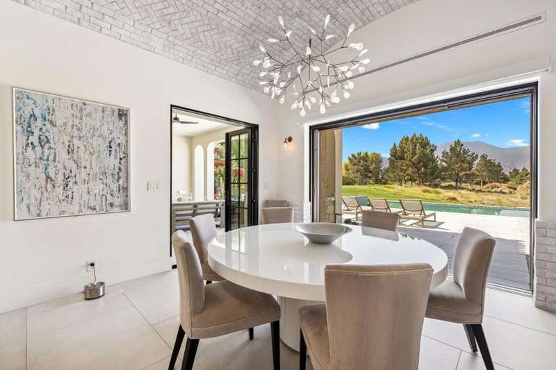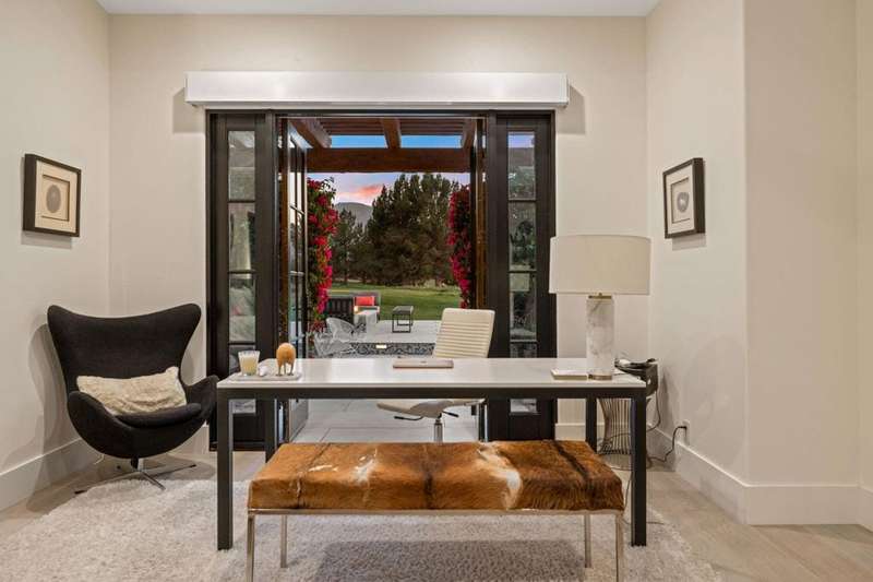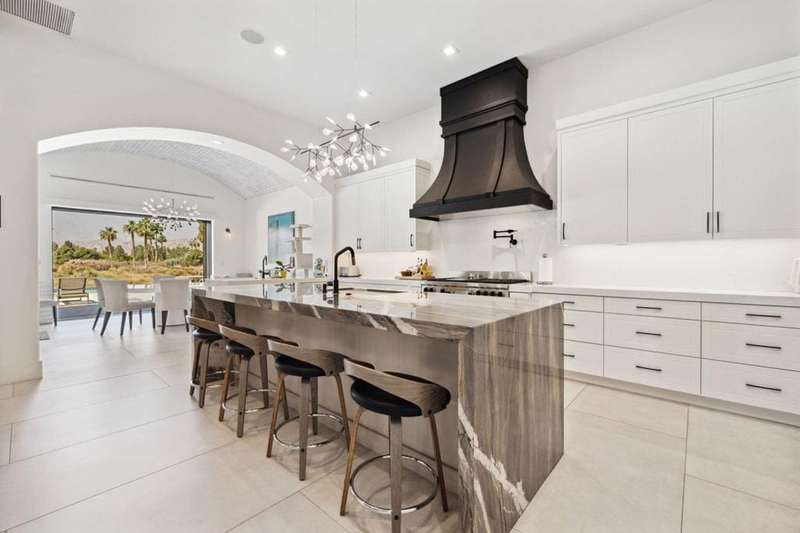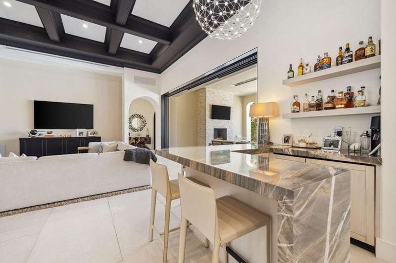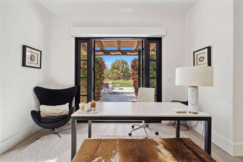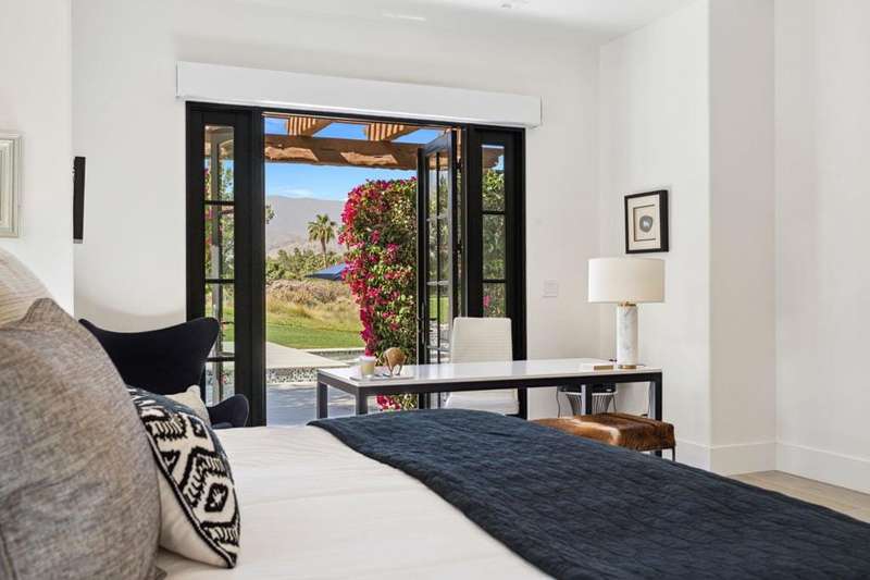 Welcome to one of the most remarkable properties in the prestigious Hideaway community of South La Quinta. Perhaps one of the largest and most private residences in the entire community, this 20K sq ft lot expands into acres of unobstructed southwest facing mountain views. With no other homes in sight from the interior view, this residence provides what is unparalleled privacy that is unique and will remain forever. The property has been transformed by the current owners over the last 12 years, expanding the initial lot through a land purchase from the club in 2014 and then subsequent work over the years has resulted in what can only be described as exposing a previous diamond in the rough. Positioned on the 16th hole of the Clive Clark course, this home is perfectly positioned at the end of a rare single lined cul-de-sac. This 5-bedroom, 5 1/2-bathroom residence all on one floor, features dual master suites, a fully enclosed courtyard entry that sets the tone for the refined living within. The interior showcases timeless architectural details including arched doorways and a modern wood coffered ceiling in the great room. A recent complete re-model blends classic Hideaway style with a modern flare, the result is a true turnkey opportunity for those looking for something special. Wall-to-wall pocket doors seamlessly connect indoor and outdoor living, leading to a sprawling covered patio with a built-in outdoor grill, firepit, and fireplace. The resort-style backyard is a true desert paradise, featuring a 40 ft pool with an elevated spa and baja shelf that leads to a perfect setting with a special view. The updated rear of the property is accentuated with fire features both at the pool's edge and an elevated outdoor entertaining area with firepit. Adjacent to the firepit is your own lighted bocce ball court. The property has a professionally designed outdoor sound system encompassing buried subwoofers and 16 speakers for an unparalleled and private listening experience. 53731 Via Mallorca, a rare and refined offering in one of the desert's most exclusive enclaves--this is Hideaway living at its finest.