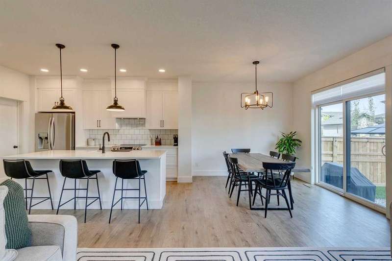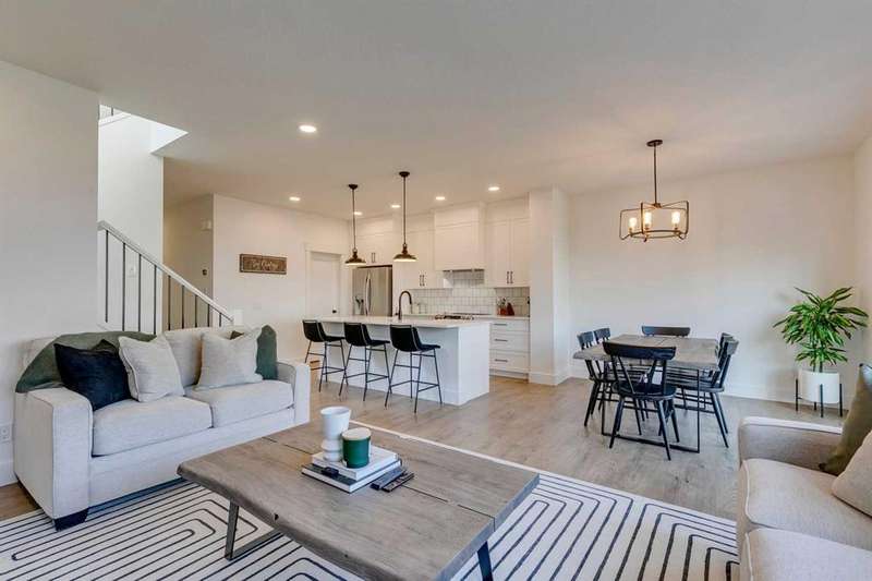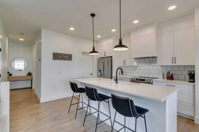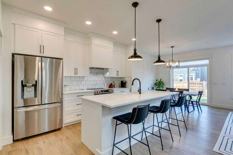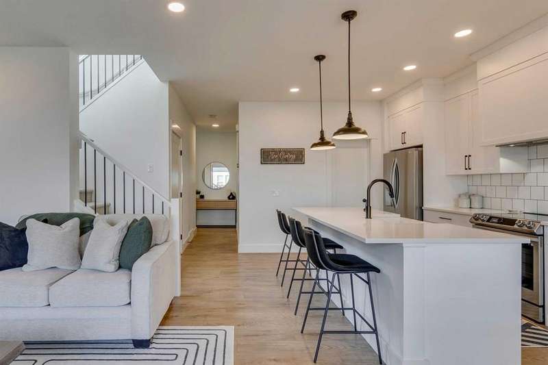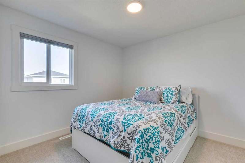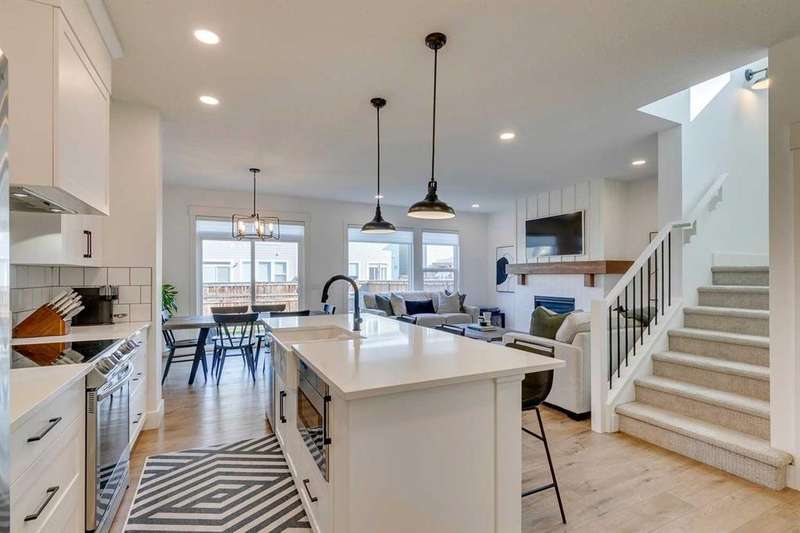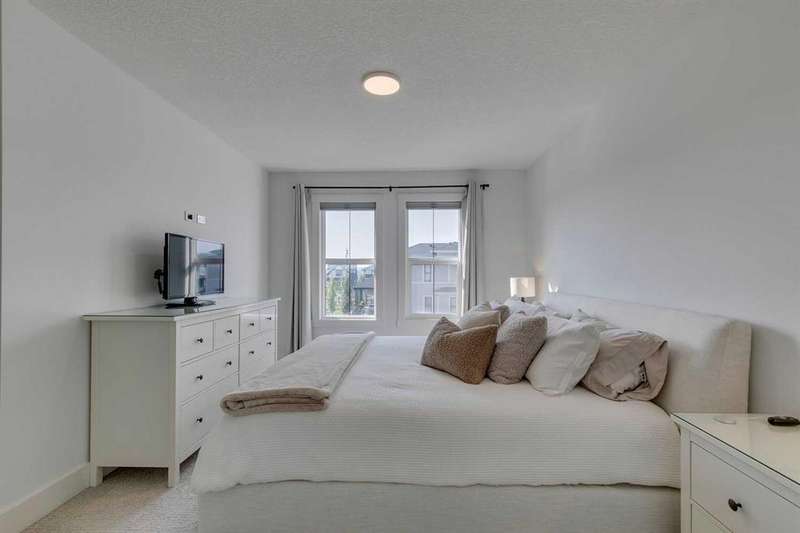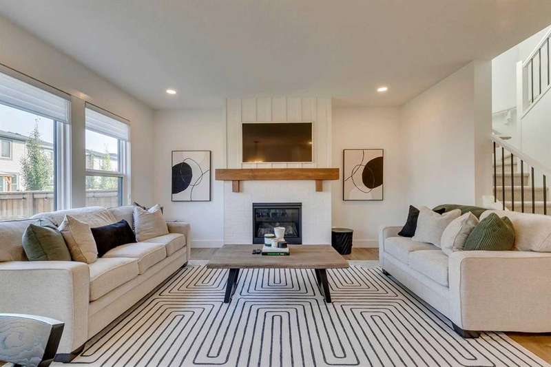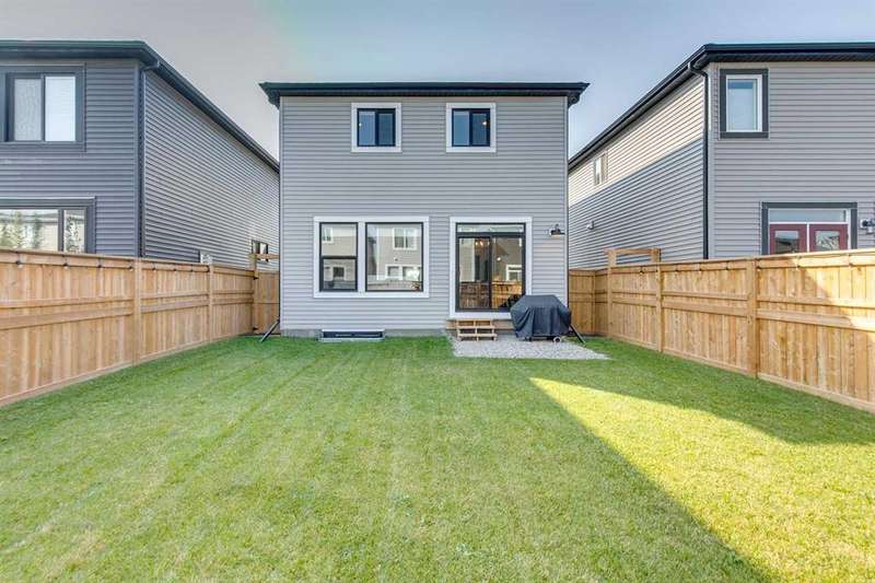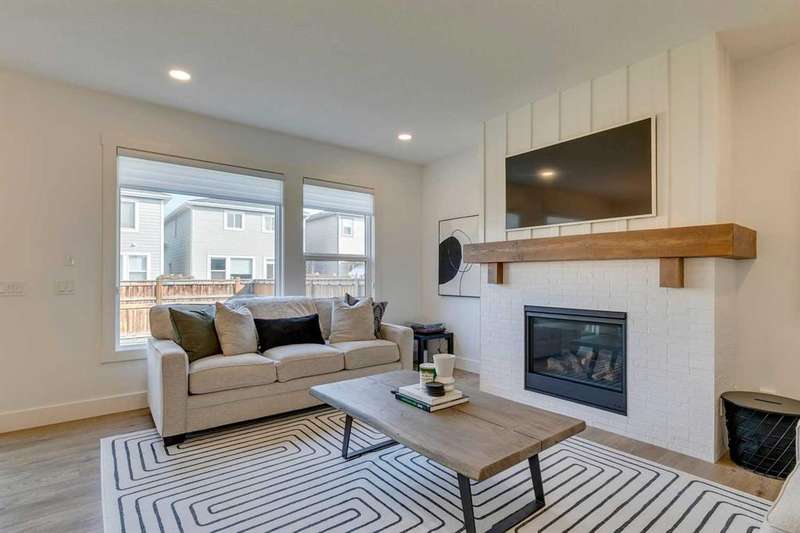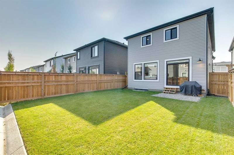 Pine Creek – 150 Creekstone Passage SW: Welcome to this immaculate, turn-key 2-storey home offering 1,938 sq ft of stylish living space with 3 bedrooms, 2.5 bathrooms, and an attached double garage. The bright, open main floor features luxury vinyl plank flooring throughout. The chef’s kitchen boasts a farmhouse sink, quartz countertops, stainless steel appliances (electric range, microwave drawer, range hood, dishwasher, and refrigerator), a walk-through pantry, and a spacious dining nook with sliding doors to the backyard. The inviting living room includes a gas fireplace with a white tile/brick surround and mantle. A private den with sliding barn doors, a 2-piece powder room, and a mudroom complete the main level. Upstairs, the primary suite includes a walk-in closet and a 5-piece ensuite with a soaker tub, fully tiled glass shower, dual sinks, and ample storage. Two additional bedrooms, a large bonus room, a convenient laundry room with shelving, and a 4-piece main bathroom provide plenty of space for family living. This home showcases thoughtful builder upgrades throughout, including ceiling-height kitchen cabinetry and quartz counters in both the kitchen and bathrooms, light fixtures throughout + much more. The fully fenced and landscaped backyard includes rock hardscaping on both side yards and a gas line for your BBQ. The basement is undeveloped with a rough-in for a 3-piece bathroom, offering future potential. Set on a quiet street across from a playground, this home is ideally located in the growing community of Pine Creek, surrounded by green space, parks, and pathways. Enjoy quick access to Spruce Meadows, golf courses, and recreation facilities, plus convenient shopping, dining, and services in nearby Silverado, Walden, Legacy, and Shawnessy. Schools and future amenities continue to expand as the community grows. Call for more info!