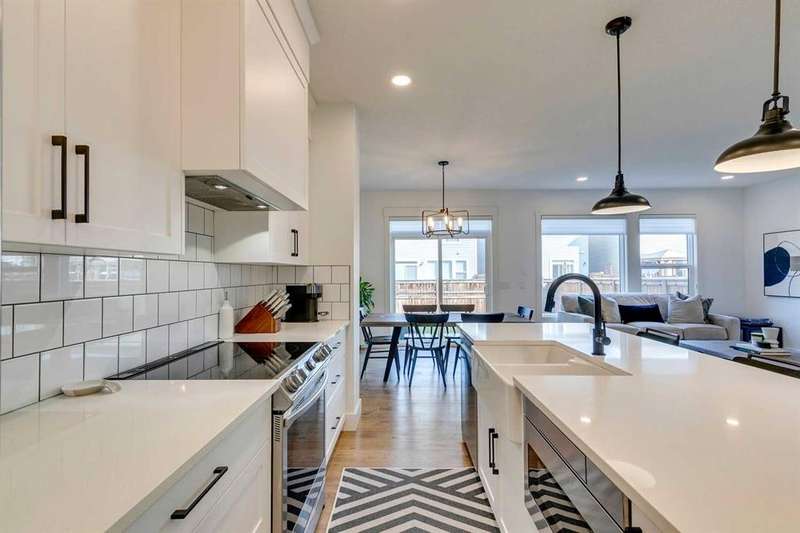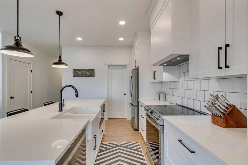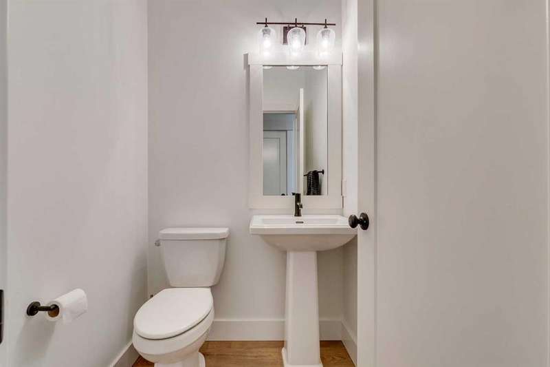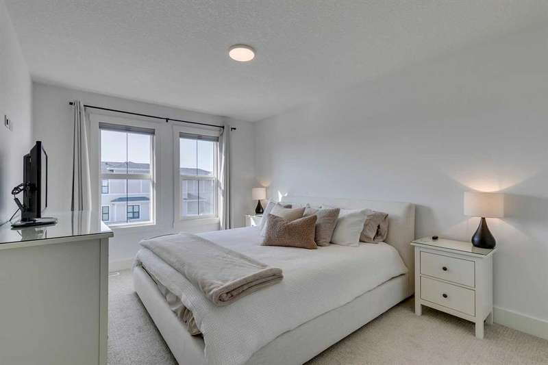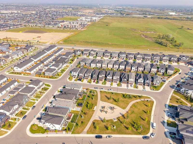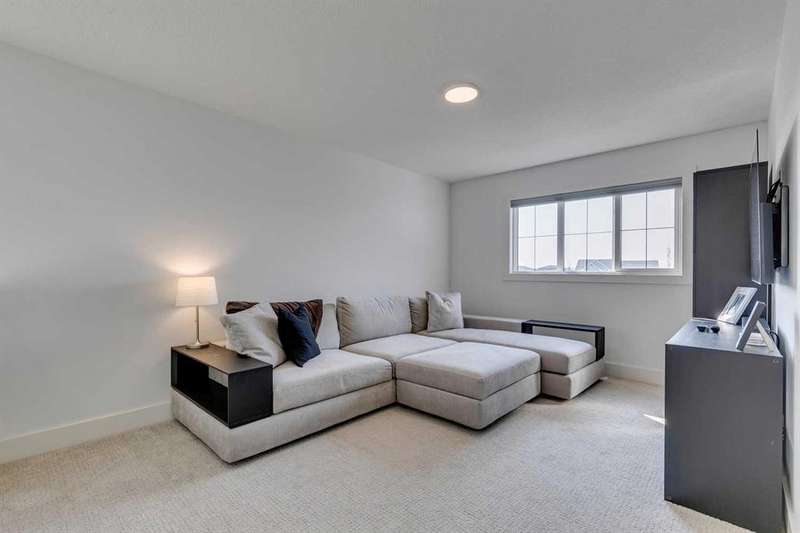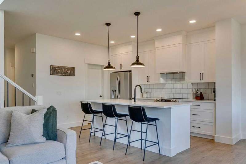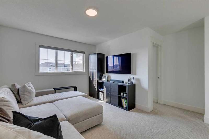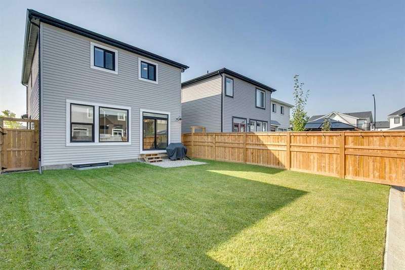 Pine Creek – 150 Creekstone Passage SW: Welcome to this immaculate, turn-key 2-storey home offering 1,938 sq ft of stylish living space with 3 bedrooms, 2.5 bathrooms, and an attached double garage. The bright, open main floor features luxury vinyl plank flooring throughout. The chef’s kitchen boasts a farmhouse sink, quartz countertops, stainless steel appliances (electric range, microwave drawer, range hood, dishwasher, and refrigerator), a walk-through pantry, and a spacious dining nook with sliding doors to the backyard. The inviting living room includes a gas fireplace with a white tile/brick surround and mantle. A private den with sliding barn doors, a 2-piece powder room, and a mudroom complete the main level. Upstairs, the primary suite includes a walk-in closet and a 5-piece ensuite with a soaker tub, fully tiled glass shower, dual sinks, and ample storage. Two additional bedrooms, a large bonus room, a convenient laundry room with shelving, and a 4-piece main bathroom provide plenty of space for family living. This home showcases thoughtful builder upgrades throughout, including ceiling-height kitchen cabinetry and quartz counters in both the kitchen and bathrooms, light fixtures throughout + much more. The fully fenced and landscaped backyard includes rock hardscaping on both side yards and a gas line for your BBQ. The basement is undeveloped with a rough-in for a 3-piece bathroom, offering future potential. Set on a quiet street across from a playground, this home is ideally located in the growing community of Pine Creek, surrounded by green space, parks, and pathways. Enjoy quick access to Spruce Meadows, golf courses, and recreation facilities, plus convenient shopping, dining, and services in nearby Silverado, Walden, Legacy, and Shawnessy. Schools and future amenities continue to expand as the community grows. Call for more info!