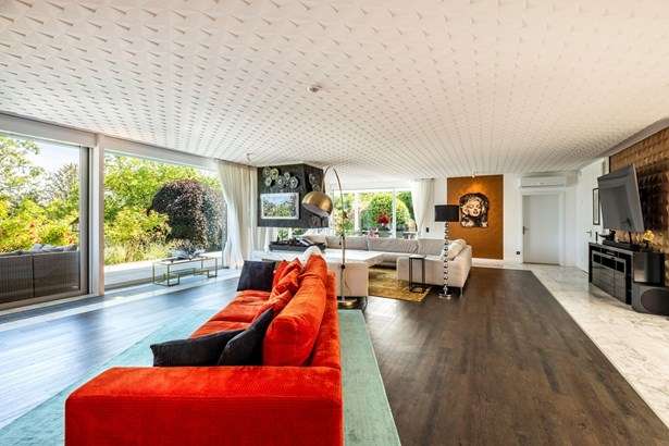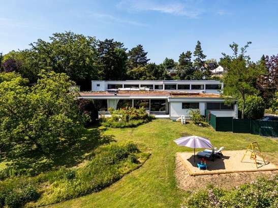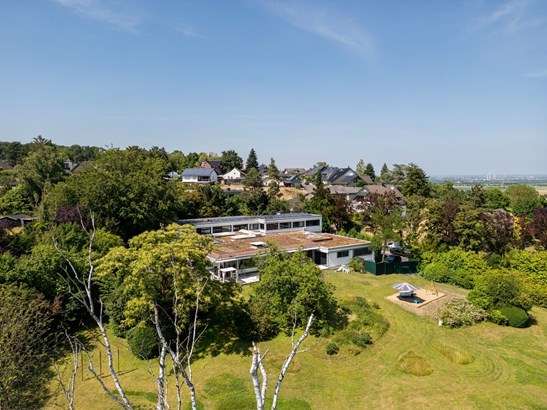 Architecturally unique property with distant views - Villa Nitsche in an exclusive elevated location in Bornheim-MertenA very special property awaits you in a privileged elevated location in Bornheim-Merten, with impressive distant views as far as Cologne Cathedral: Villa Nitsche - an architectural masterpiece from the 1970s, designed by the renowned architect Nitsche. This unique property combines the clear formal language of mid-century design with modern living comfort at the highest level.The architecture is characterized by generosity, light and openness: floor-to-ceiling glass fronts bring the surrounding nature into the house and create an almost limitless feeling of space. The materials and lines typical of the 1970s style were carefully preserved during the extensive modernization and complemented with contemporary features.The heart of the villa is the approx. 125 m² living and dining area with an impressive open fireplace - an impressive meeting place for family and guests. From here you have direct access to the approx. 56 m² sun terrace with outdoor fireplace, which forms the transition to the park-like garden with mature trees, pond and greenhouse.Room layout and furnishings:On the first floor, there is an open-plan kitchen with a fitted kitchen in mint condition, an office, a dressing room and a checkroom. At the opposite end of the floor are two bedrooms as well as a bathroom with bathtub and a shower room - both with natural lightCentrally located is the light-flooded atrium with integrated hobby room, which gives the house a very special architectural focal point.A wide staircase leads to the upper floor, which is generously equipped with five further rooms, three bathrooms and a separate guest WC. Thanks to a separate entrance, this area is also ideal for guests, au pairs, a practice or working from home.The luxurious living comfort is rounded off by an indoor swimming pool with adjoining sauna and sanitary facilities - an exclusive retreat within your own home.The overall architectural design is a particular highlight: clear lines, well thought-out visual axes and unusual details make the villa a truly unique property that goes far beyond the ordinary.Features at a glance:- Architect's villa (Nitsche) - a unique architectural piece- Living/dining area with approx. 125 m² and large fireplace- 8 bedrooms, office, dressing room, checkroom, a total of 5 bathrooms + guest WC- Fitted kitchen as good as new- Indoor swimming pool with sauna and sanitary area- Large glass fronts with distant views as far as Cologne- Atrium with integrated hobby room- Approx. 56 m² terrace with outdoor fireplace- Park-like plot with pond, greenhouse and mature trees- Double garage- Separate entrance- Extensively modernized while preserving the original architectureSummary:Villa Nitsche is more than just a home - it is an architectural statement and a stylish retreat. An exceptional property for individualists, design lovers and anyone looking for something special - with a fantastic view and a plot that leaves nothing to be desired.- Solid construction- Flat roofs, partly designed as green roofs- Plastic and aluminum windows with insulating glazing- Aluminum artwork door system- Modern heating technology with combined heat and power unit and photovoltaics- Heated indoor swimming pool- sauna- Alarm system with security service and remote notification on cell phone, camera surveillance- Park-like plot with pond- double garage- up to 8 outdoor parking spaces- driveway to the villa- open fireplace- outdoor fireplace.