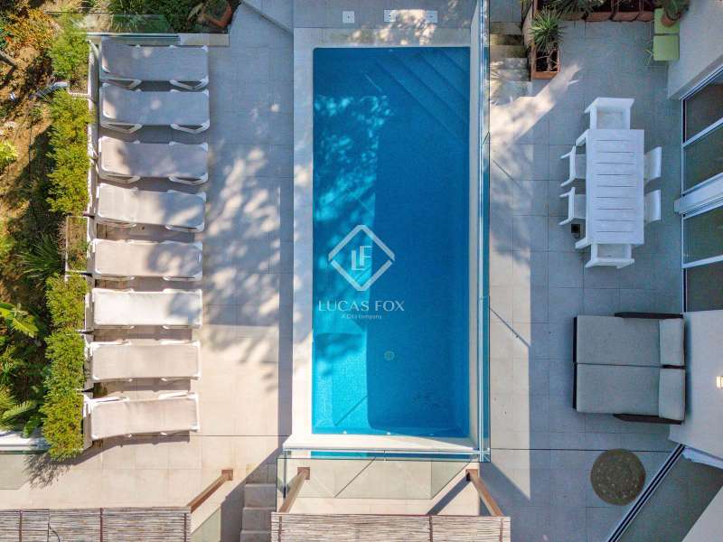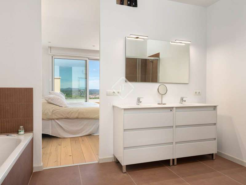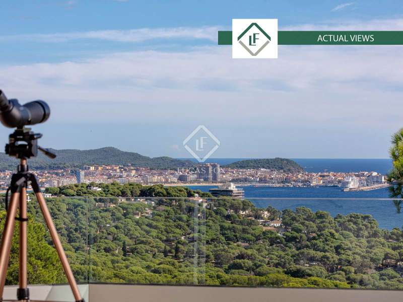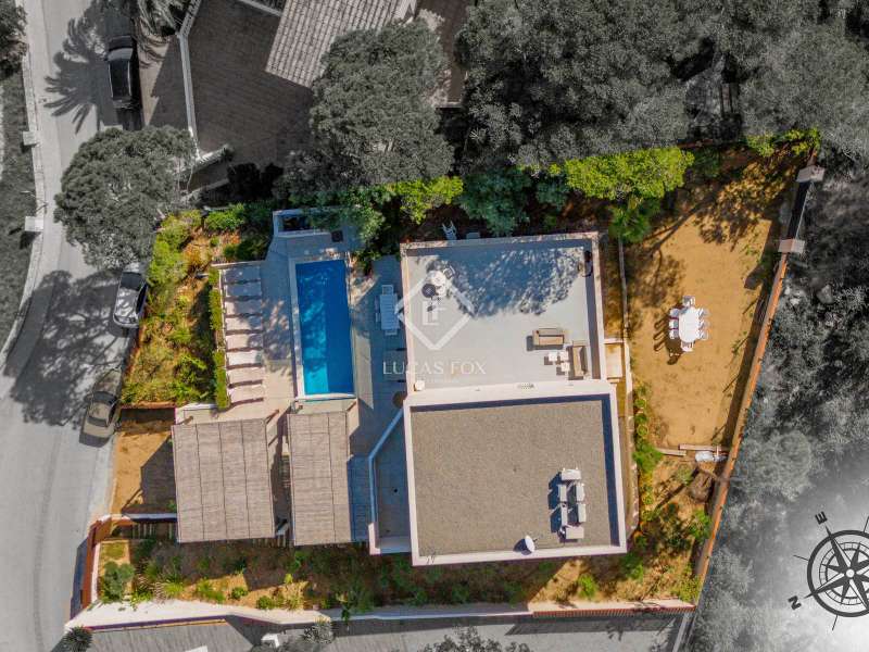 Lucas Fox presents Villa Valentina, a 2023 property with the best location to enjoy stunning sea and mountain views in Calonge, Costa Brava. It is located in a residential area 5 minutes by car from Platja d'Aro and 700 meters from the beach. The property has a constructed area of approximately 291 m², on a plot of approximately 703 m². The house has two entrances. The first is near the garage and allows us to access the first terrace with its barbecue area and its 7 x 3 meter swimming pool with its space for hammocks and solarium. We go up to the second terrace to access the house through the spacious living-dining room with an open-plan space and its open kitchen fully equipped with all the appliances. On the main floor we find the night area with two double bedrooms with views and access to the pool and another double bedroom with views to the back garden . On this floor, there is a laundry room room, a guest toilet and a double bathroom with a shower. We go up to the upper floor via stairs with microcement cladding to access the double master bedroom. It is very spacious, with an area of about 50 m² with its dressing room, study, full bathroom with bathtub, shower and two terraces with beautiful views of the sea and the mountains. The garden has car . The garage is located at the front of the property, with capacity for a large car , a few motorcycles, a few bicycles and also storage space. The entire house is equipped with large double-glazed windows with electric shutters. The night area has natural parquet floor and the day area has porcelain floor . In addition, it has an alarm system and a Daikin brand hot-cold aerothermics heating system. Villa Valentina is ready to move into and enjoy the Costa Brava. Please contact us to arrange a visit or request more information.
